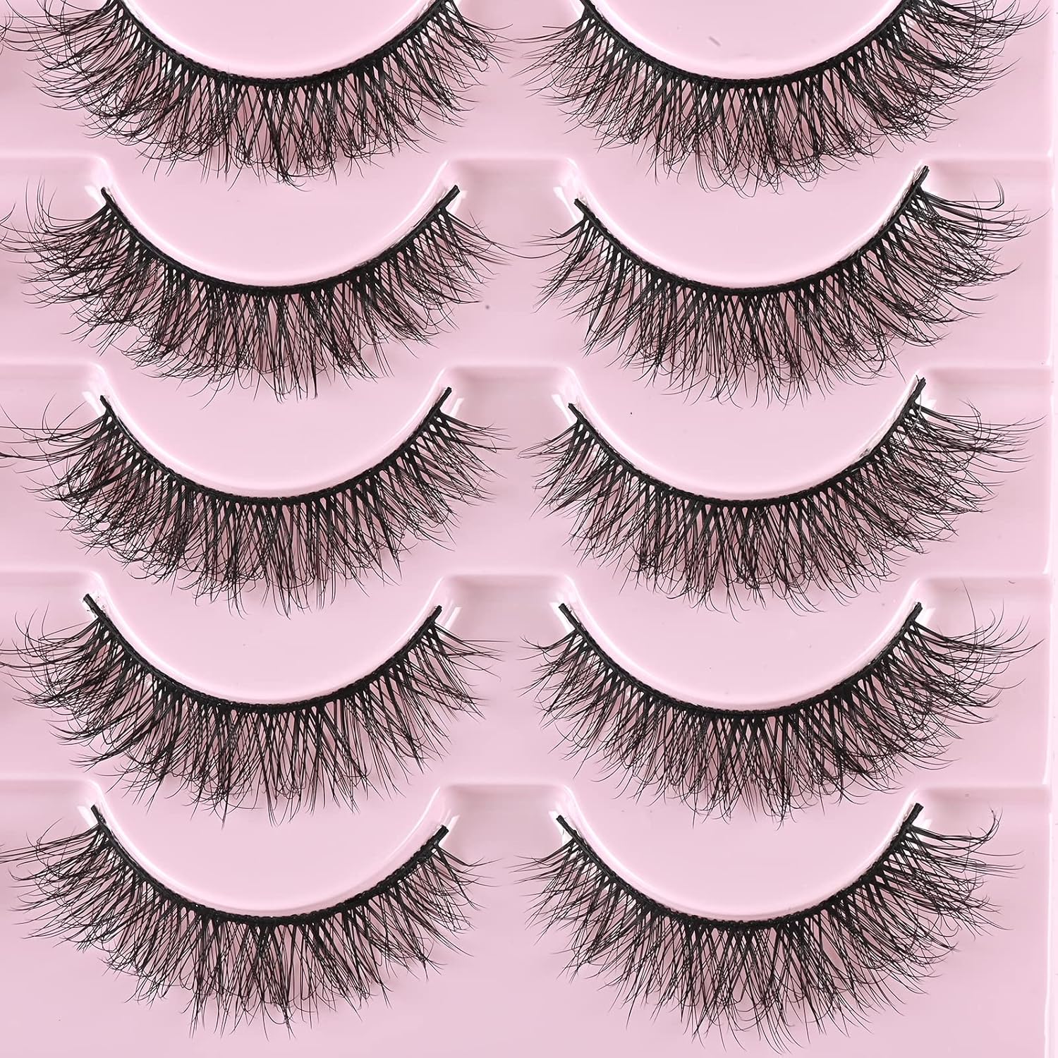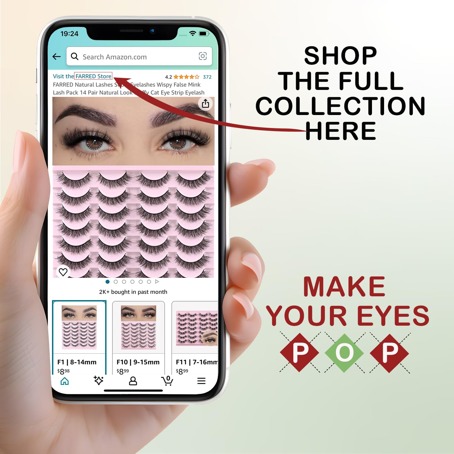 FARRED Natural Lashes Short Eyelashes Wispy False Mink Lash Pack 14 Pair Natural Look Fluffy Cat Eye Strip Eyelash Small Fake Lashes Full Pestañas Sets for MUA and Beginners Daily Makeup (F1 | 8-14mm)