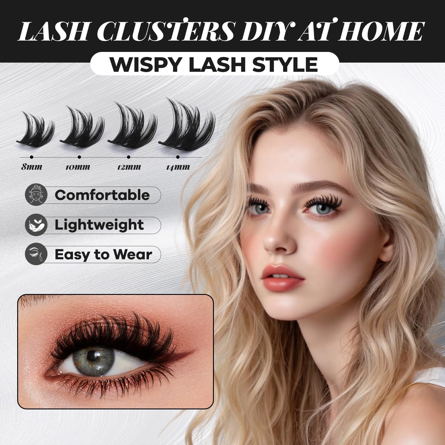 - Salon-Quality Lash Clusters Kit: 8-14MM mixed-length eyelash clusters create a wispy, natural lash clusters effect, blending seamlessly with your real lashes for DIY lash extension perfection.