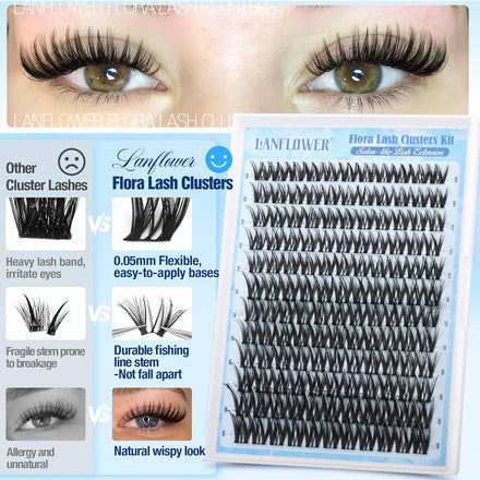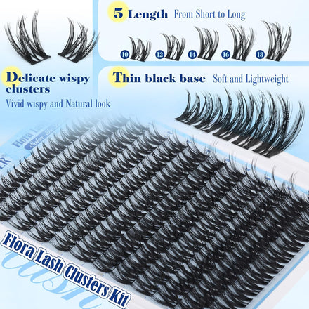 - Lightweight Comfort: Lash clusters kit has an ultra-thin 0.05mm lash band. The wispy lashes clusters are lightweight and comfortable, seamlessly blending with natural lashes without weighing down eyelids or causing irritation.
