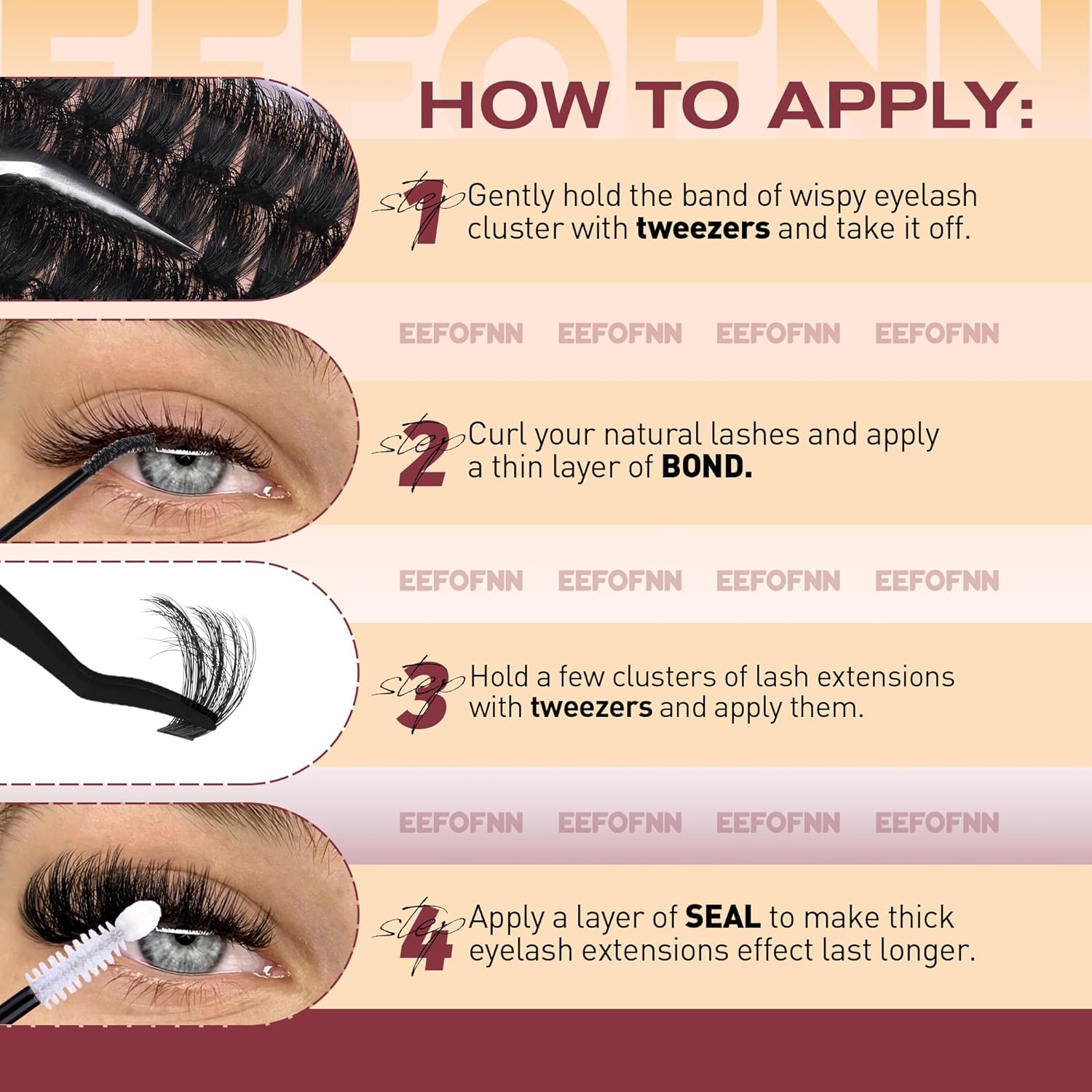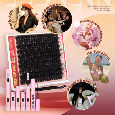 Since its establishment, Eefofnn has always put the feelings of customers first. We are honored to help every woman to inspire her beauty power. Be yourself, and you'll be beautiful. Fluffy Lash Clusters Kit Volume Lash Clusters Kit Spikes Individual Lashes Manga Lash Clusters Kit DIY Lash Extension Kit Fluffy Eyelash Clusters D Curly Cluster Lashes