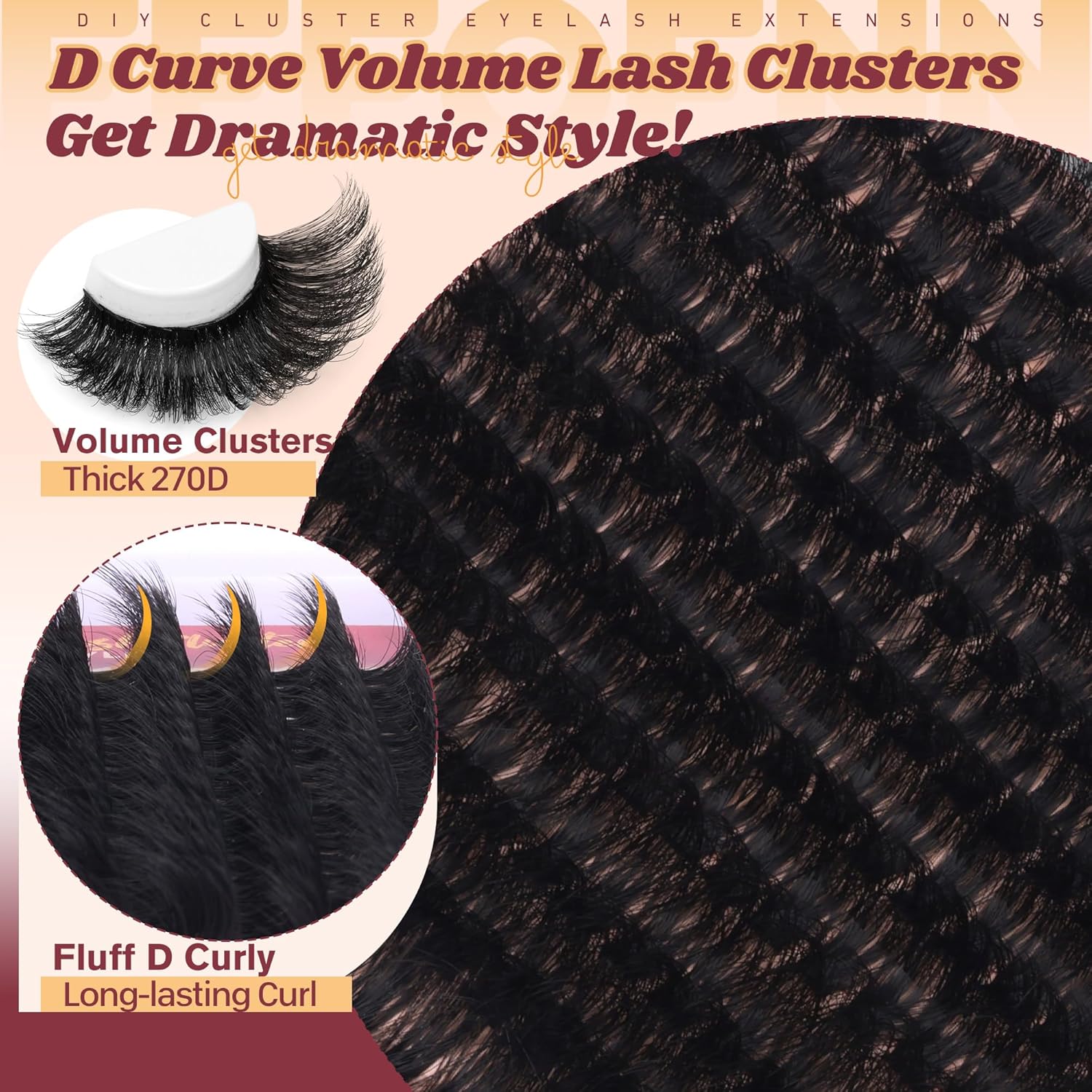 • Super Fluffy & Voluminous Lash Extension Effect: Volume lash clusters feature 270D density and long-lasting d curly, designed to create a bold fluffy eyelash extension look. Long and thick cluster eyelash extensions add depth and deliver a mega lash extensions effect that lasts.