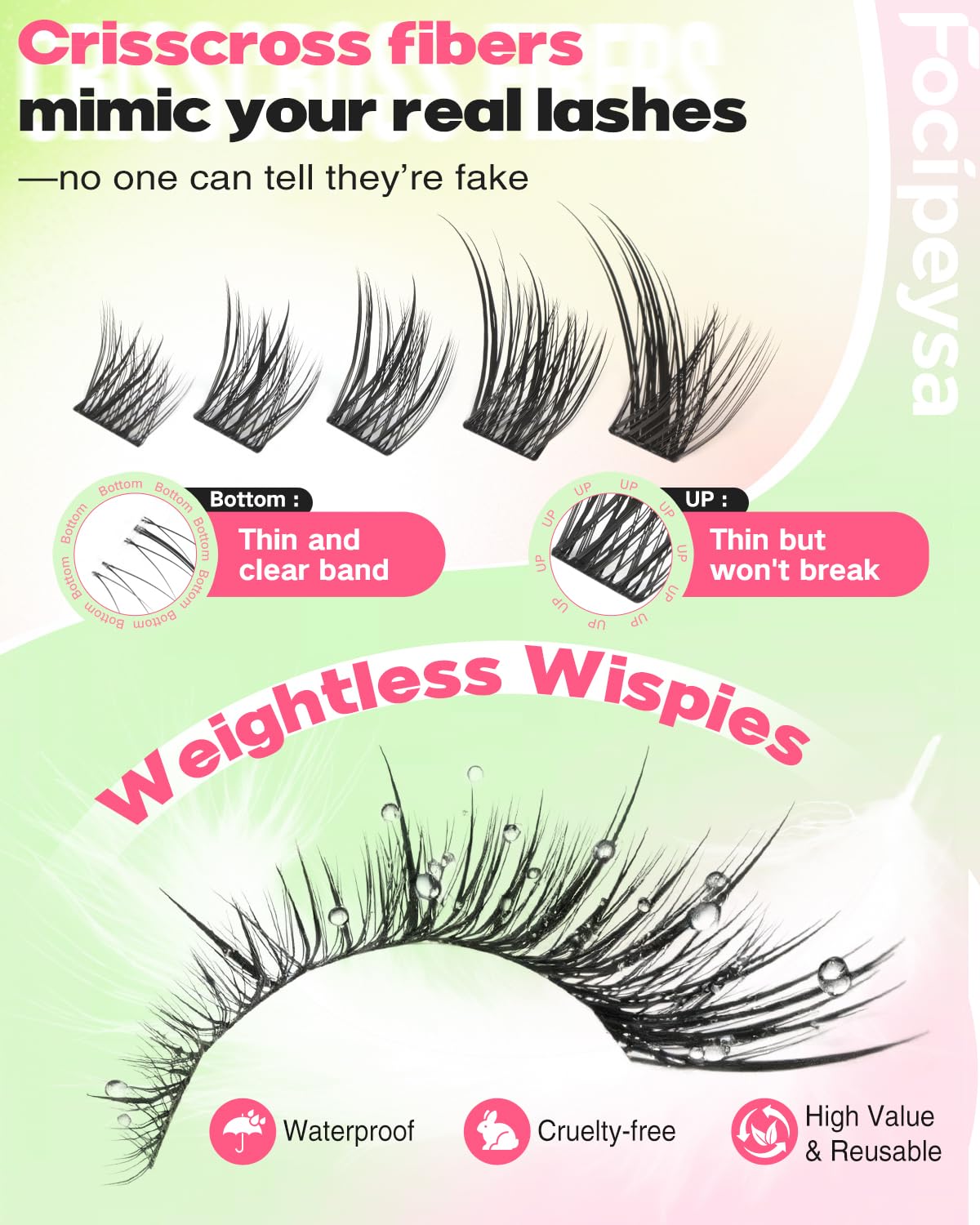 • All-Day Comfort & Reusable C-Curl: Designed for long-lasting wear, Focipeysa's breathable, vegan-friendly wispy lash extension provide a feather light, irritation-free experience day or night. The soft, flexible material (no harsh plastic!) and natural C-curl lift ensure a salon-quality natural eyelash extension effect—reusable for multiple stunning wears.
