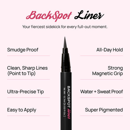 • BackSpot Liner: A long-lasting magnetic eyeliner designed to lock your lashes in place with precision, power, and zero glue. Smudge-proof, cheer-tested, and made for on-the-go glam.