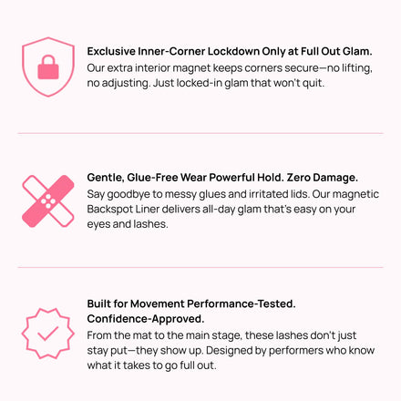 • Strong Magnetic Grip: BackSpot magnetic liner keeps lashes secure through the toughest routines. Pairs perfectly with Full Out Glam magnetic lashes for a show-ready look.