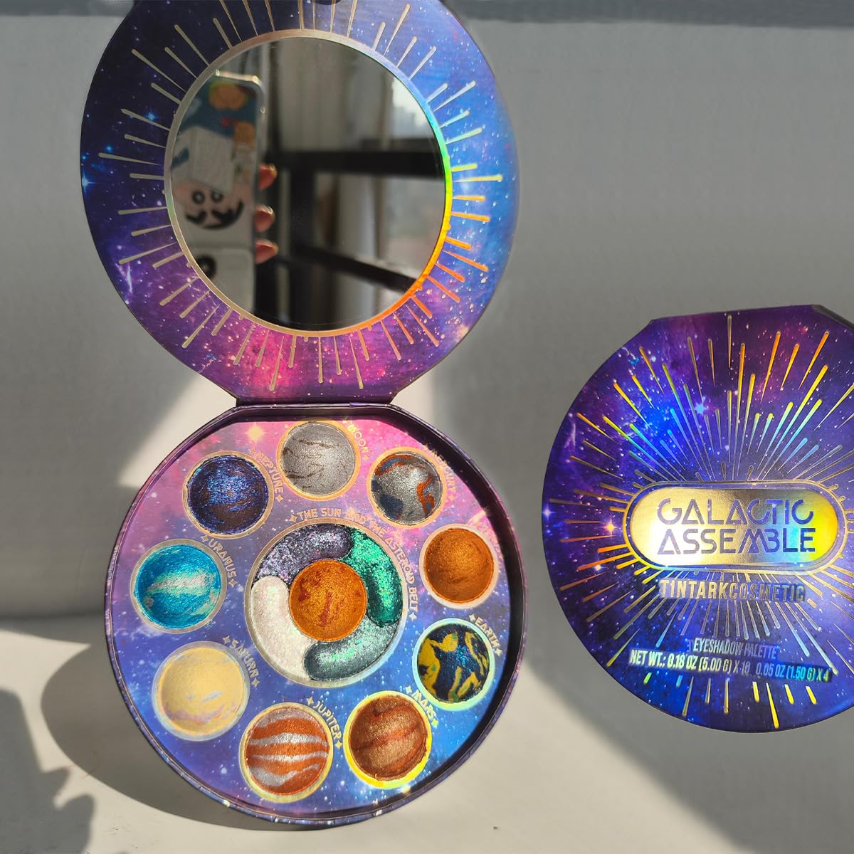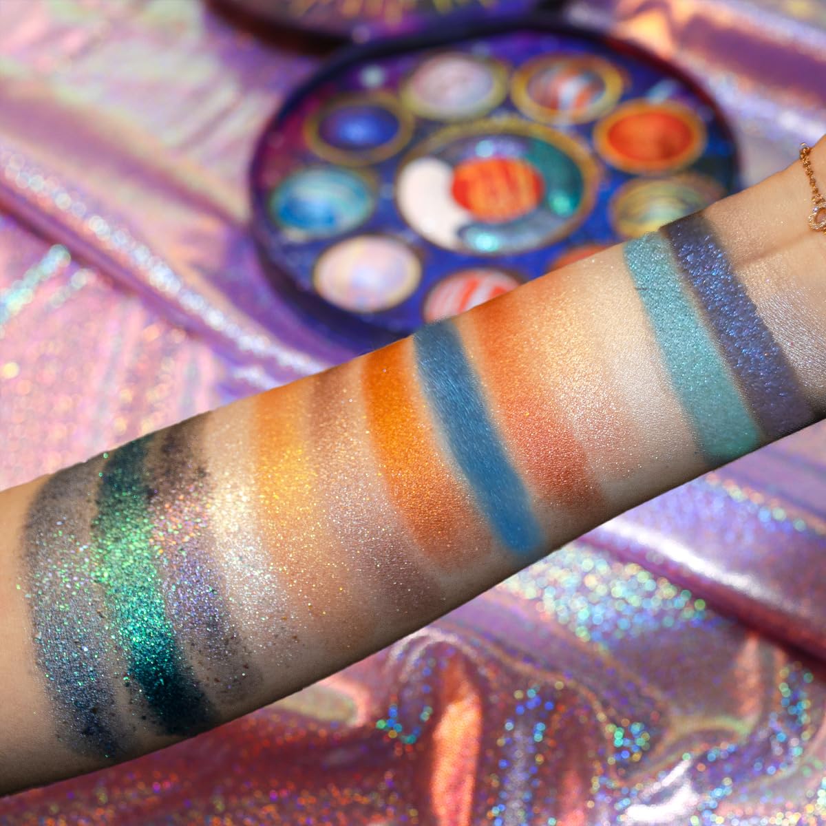 - Discover a Unique space-inspired eyeshadow palette! Featuring the Sun, Moon, Earth, Mercury, Venus, Mars, Jupiter, Saturn, Uranus, and Neptune — each shade is packed with richly pigmented metallic and shimmer eyeshadows. The frosty asteroid belt offers four chunky glitter eyeshadow tones swirled together for a dazzling intergalactic finish.