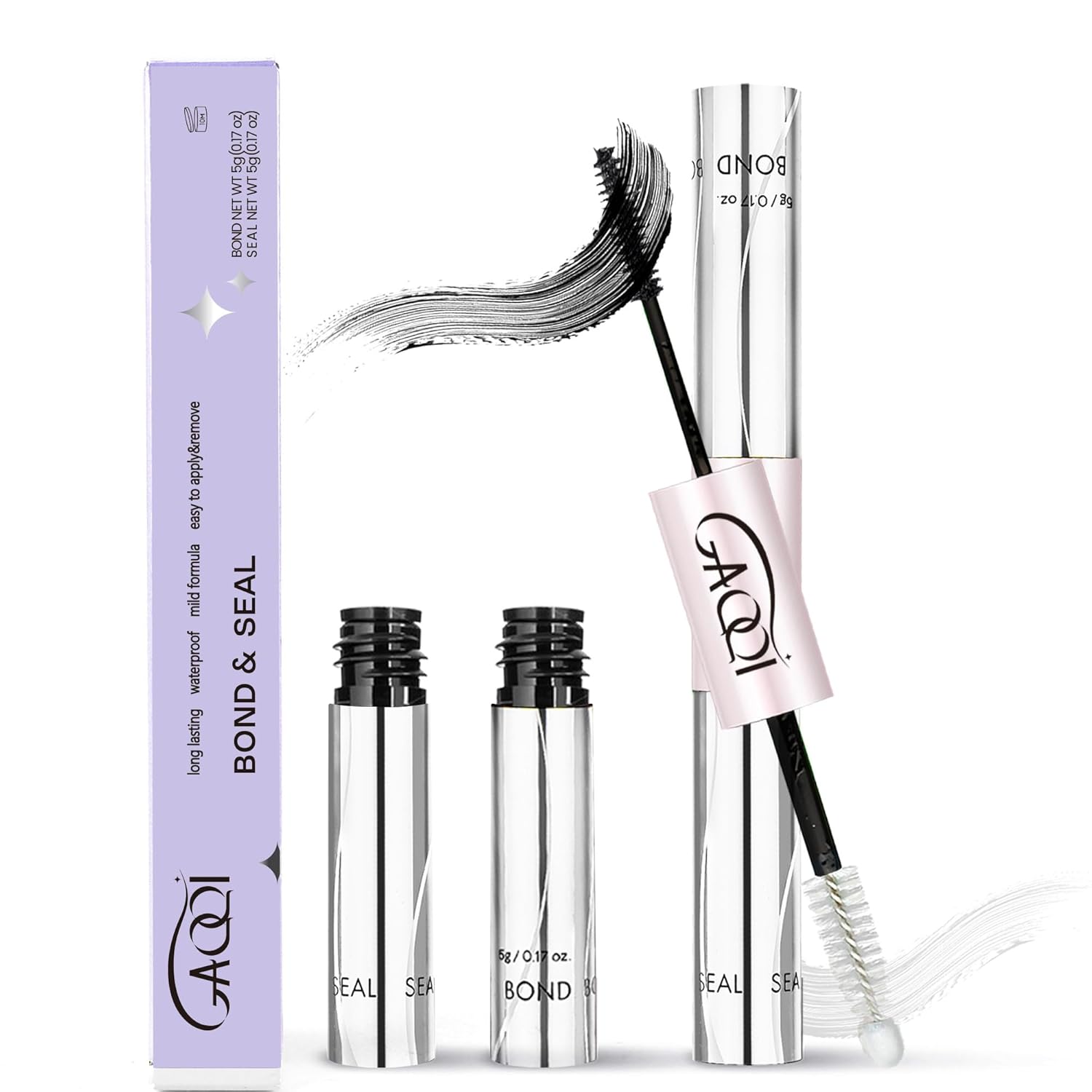 GAQQI Lash Cluster Glue, Lash Bond and Seal Waterproof, Bond & Seal Eyelash Glue for Clusters, Eyelash Adhesive Black Long-Lasting 72H, Latex-Free(5ml+5ml)
