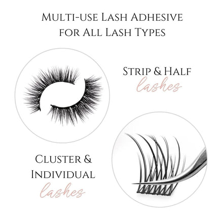 - Compatible with all Lashes: Perfect for strip, half, individual, and cluster lashes, this adhesive works seamlessly with all types of false lashes. Whether for a wedding, photoshoot, or festival, your lashes will stay in place, delivering a glam, natural wispy look.