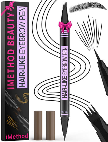 iMethod Eyebrow Pen - Eyebrow Pencil Magic 2-in-1 Eye Brow Pencils for Women with 4-Fork-Tip and Precise Brush-Tip Create Natural Hair-Like Brows, Last All Day, Microblading Eyebrow Pen, Dark Brown
