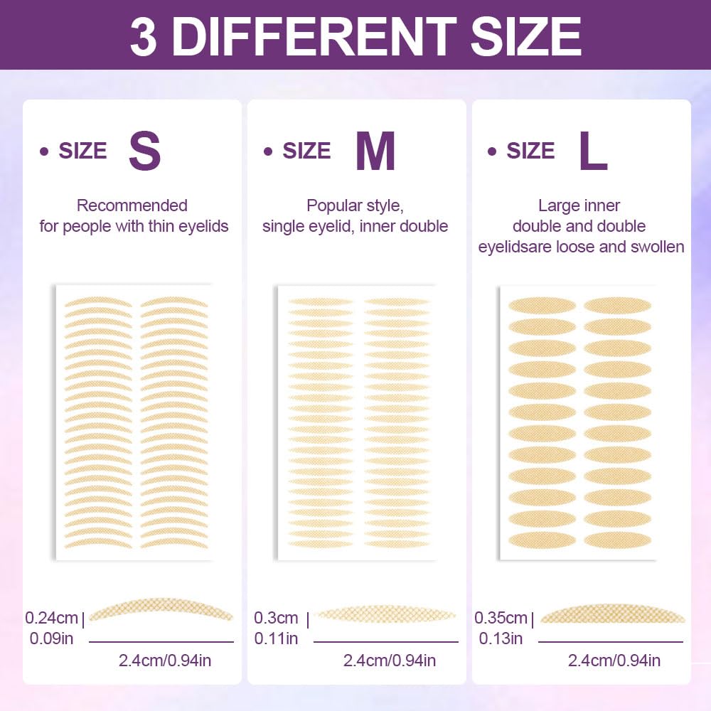 • 【Suitable for All Eyelid Problems】Our double eyelid tape is available in 3 sizes, so you can choose the most suitable size for your requirements. Whether your eyelids are thin, thick or swollen, our eyelid lifter strips are available in a range of widths to ensure a precise, customized double eyelid result.