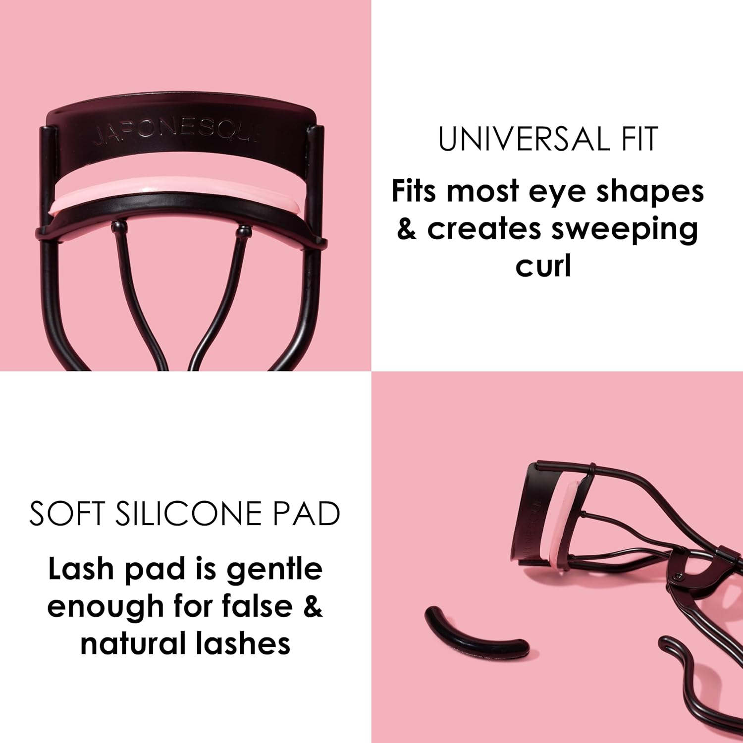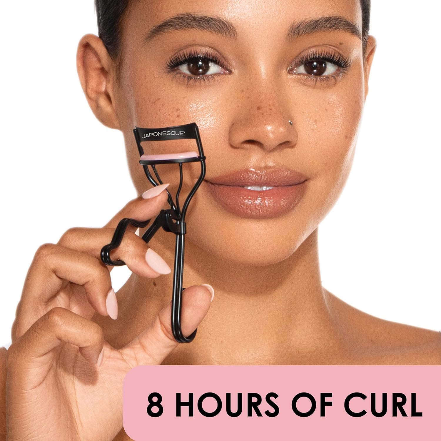JAPONESQUE Professional Volumizing Lash Curler for Natural & False Lashes on Most Eye Shapes and Large Eyes, 1 Refill Pad, Holds Curl up to 8 Hours
