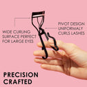 • Wide curling surface fits larger eyes or long lash lines​. ​Soft lash pad is gentle enough for both natural & false lashes.