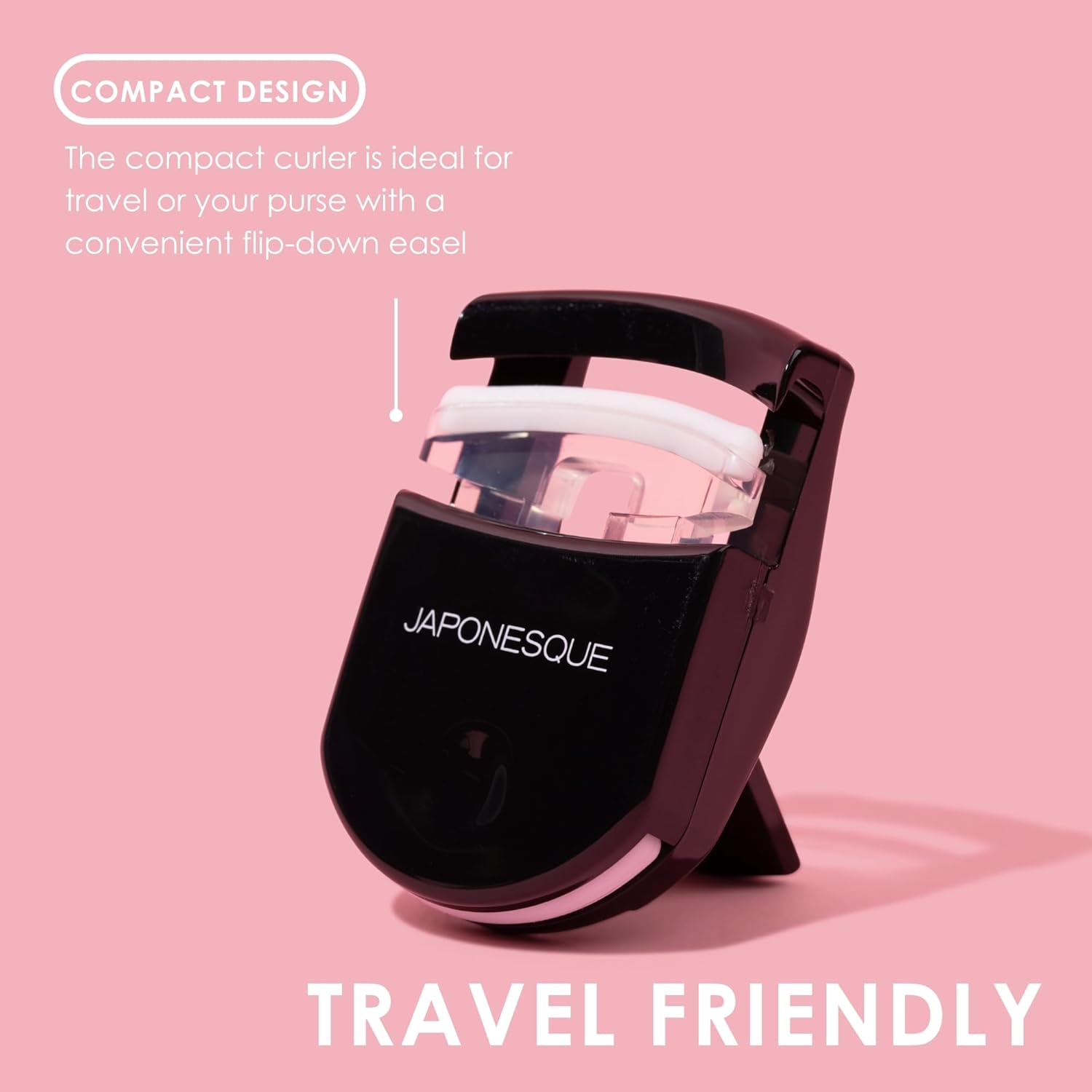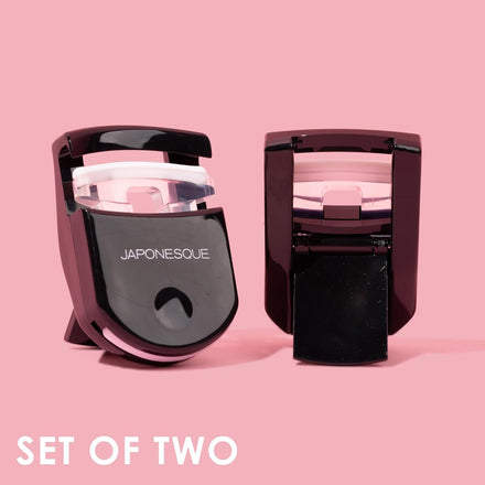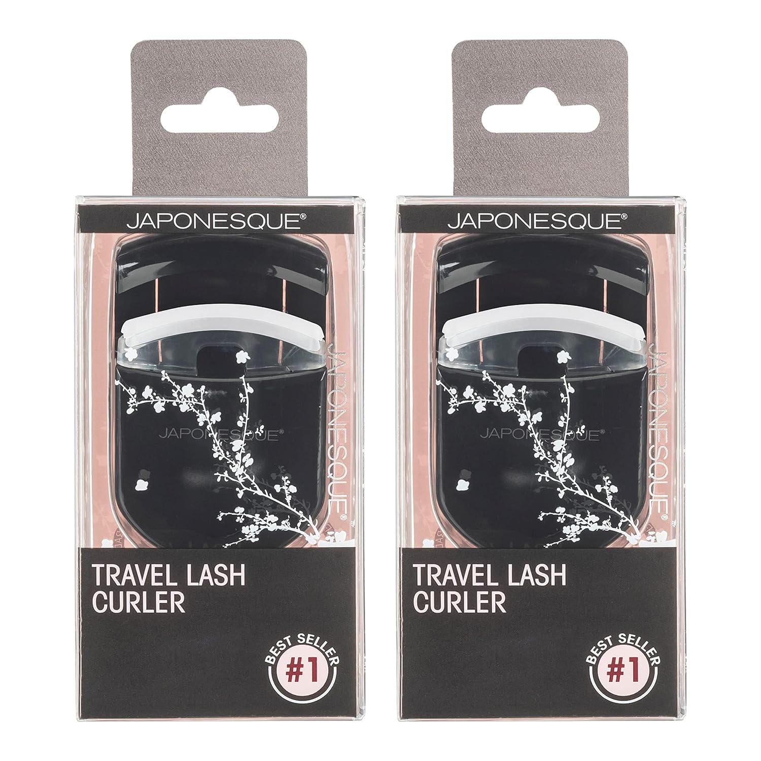 JAPONESQUE Travel Eyelash Curler, Black, Pack of 2 - Plastic Eyelash Curlers for Travel Makeup - Comes with Bonus Replacement Lash Pad - 2 Pack