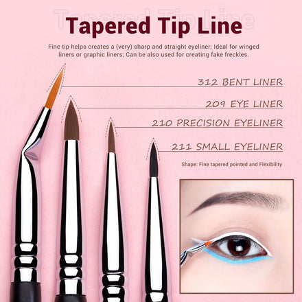 - 4pcs Tapered Tip LineShape: Fine tip helps creates a (very) sharp and straight eyeliner; Ideal for winged liners or graphic liners; Can be also used for creating fake freckles. 2pcs Flat Tip Line shape: Press gel, liquid, or powder products along the upper and lower lashlines to create an easy, thin line.