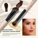 - F06 Duo-ended Precision Contour Brush: Achieve precise contouring with it. This versatile makeup brush features two heads: a small, angled side perfect for adding soft definition to the nose, eyelids, and other areas needing fine contouring, and a slightly larger side for seamless blending. Ideal for detailed work, this make up brush allows you to enhance your features with accuracy and ease, making it a valuable addition to any makeup collection.