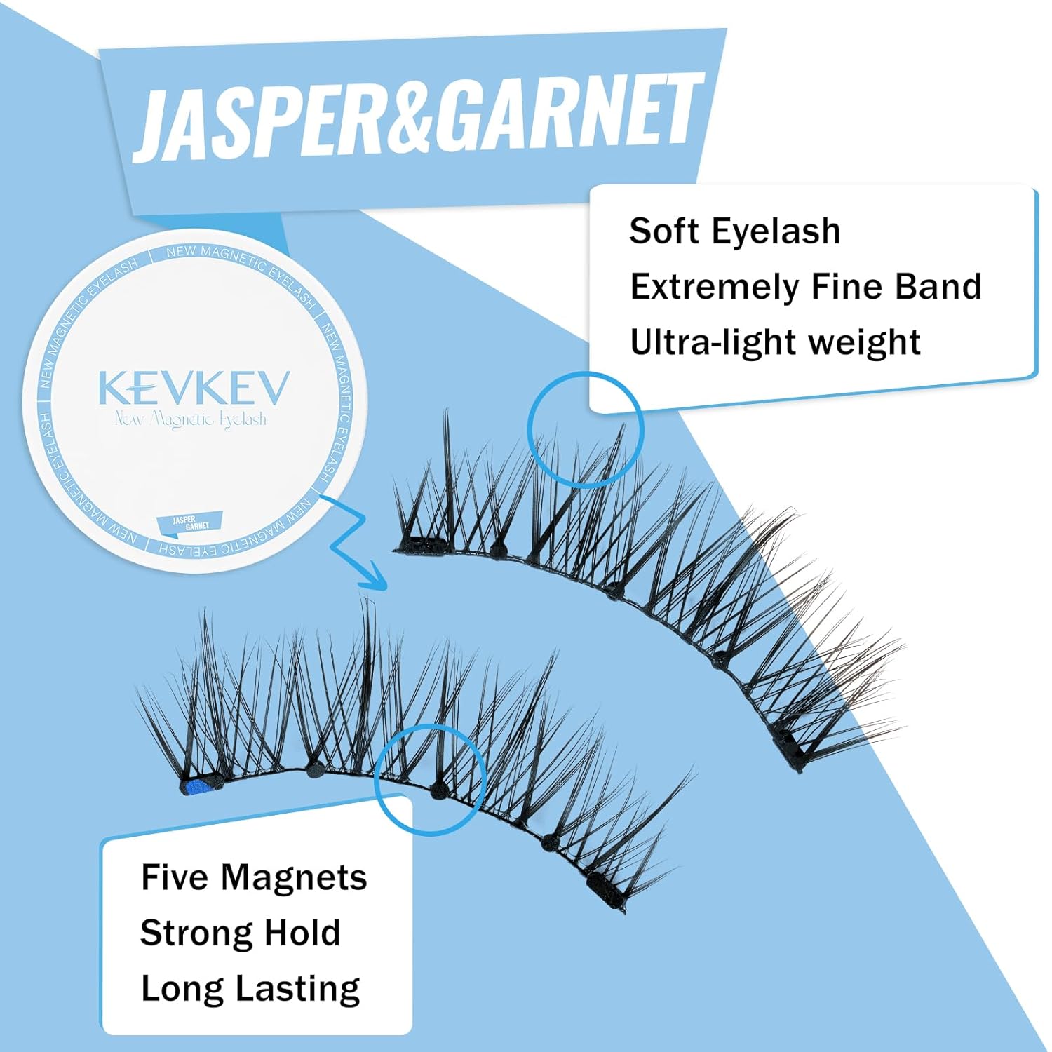 - Lightweight Magnets & Strong Hold: We chose smaller magnetic blocks for these magnetic lashes. With five small volume magnets evenly distributed across the lashes, the magnets are lighter and more invisible, but their magnetic force is stronger and strong enough to keep makeup in place all day long. For beauty and comfort at the same time!