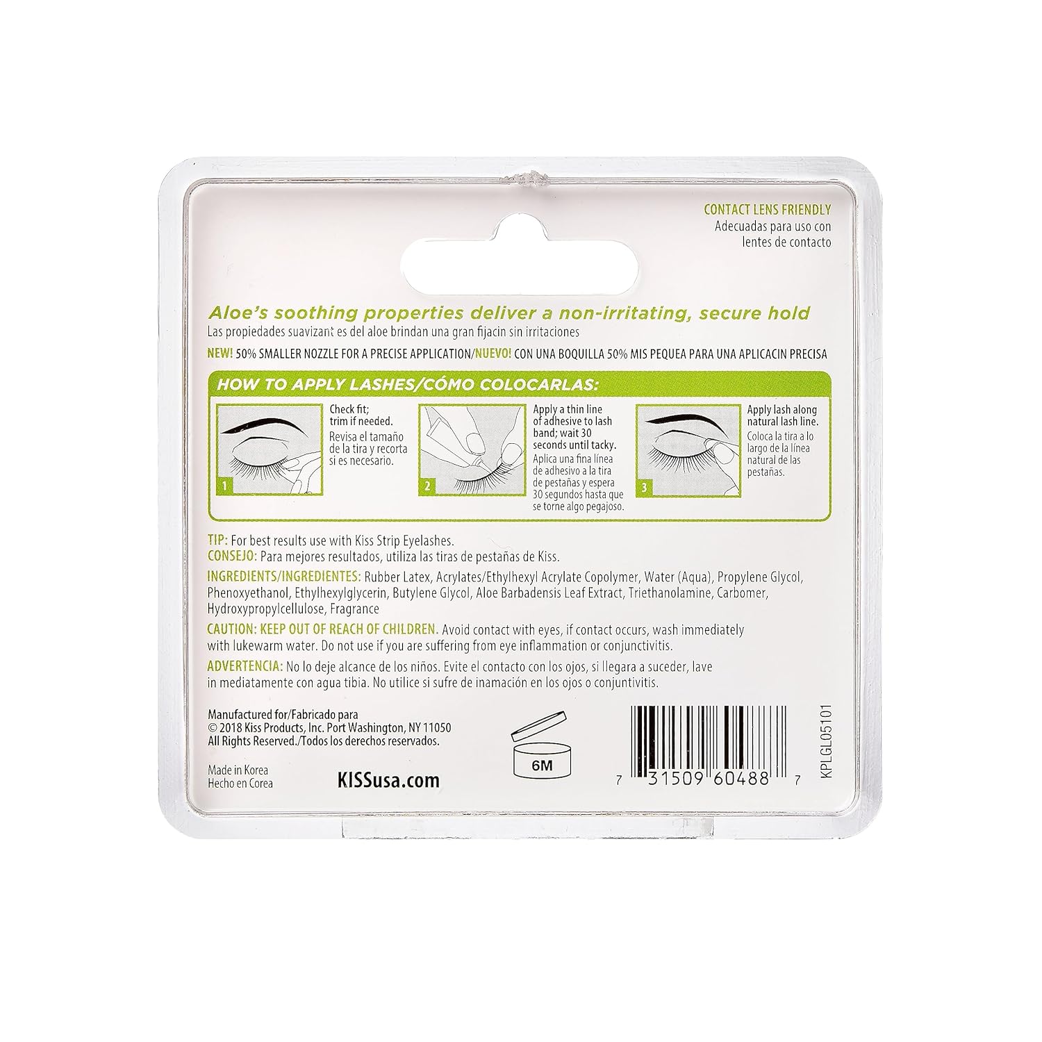 KISS Clear Strip Lash Adhesive with Aloe, Dermatologist Tested, Formaldehyde Free, Non-Irritant, Contact Lens Friendly, Secure Hold, Contains Latex, with Control Nozzle Tip, 0.24 Ounce