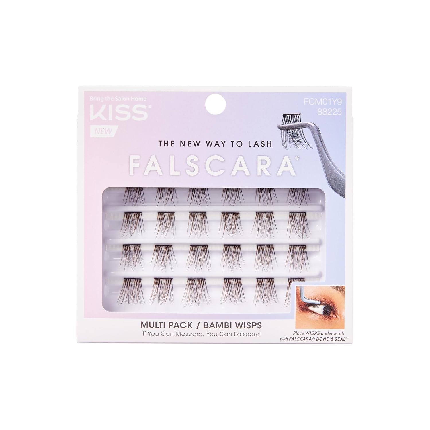 KISS FALSCARA False Eyelashes WISPS Multipack, Bambi, DIY, Natural, Ultra Glam, Invisible, Rewearable 3x, Buildable & Customizable, Easy To Apply, Split Lash Tip | 24 Wisps