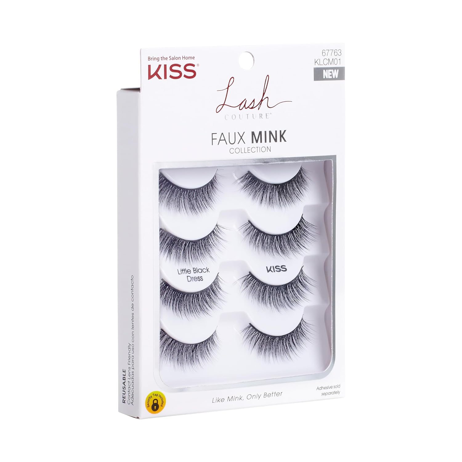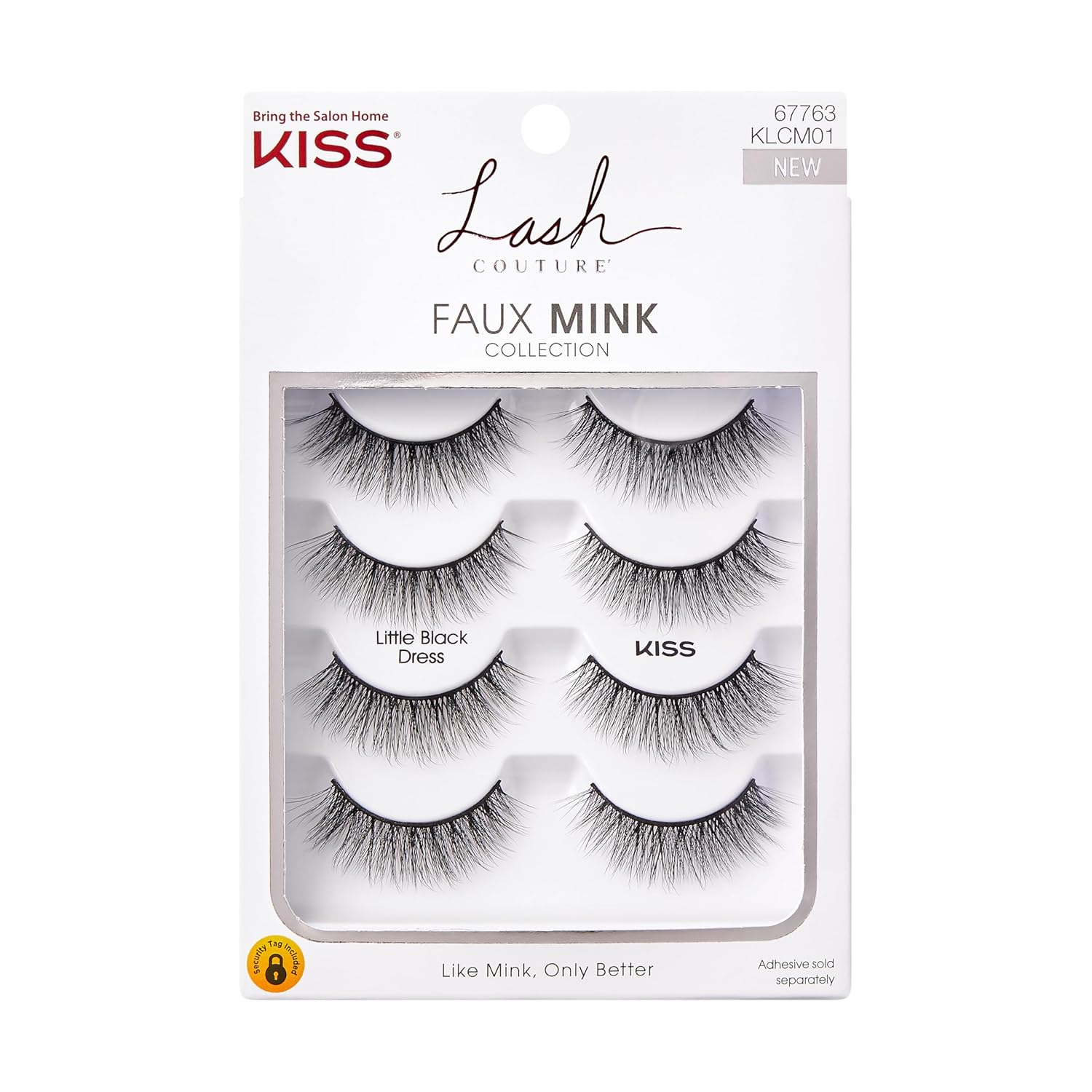 KISS Lash Couture Faux Mink False Eyelashes Multipack, ‘Little Black Dress’, 12mm, Multiple Lengths, Reusable, Cruelty Free, Vegan, Exclusive knot-free lash band, 4 Pairs