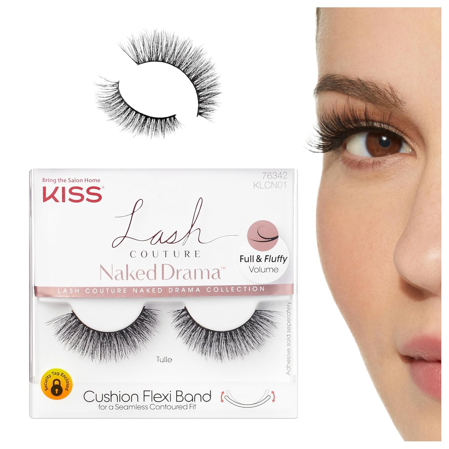 • See The Drama: Lashes so comfy, it feels like you're wearing nothing at all; synthetic lashes hold a beautiful curl, and they're virtually indistinguishable from your natural lashes; Reusable and contact lens friendly; KISS lash glue sold separately