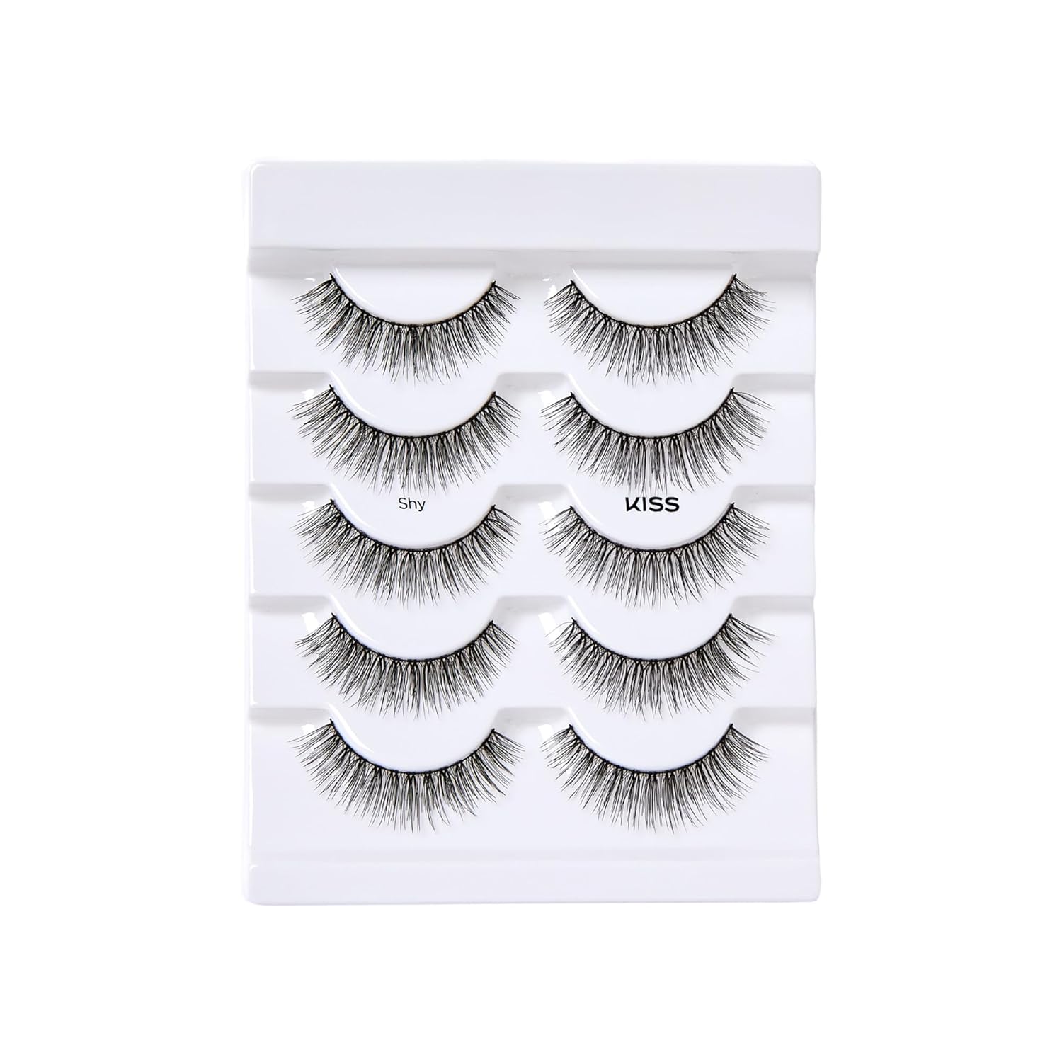 KISS Looks So Natural, False Eyelashes, 'Shy', 12mm, Includes 5 Pairs Of Lashes, Easy to Apply, Reusable Lash Clusters