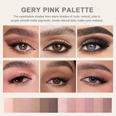 KYDA 12 Colors Grey Pink Eyeshadow Palette with Brush, High Pigment Matte Shimmer Pink Brown Eye Shadow, Netural Brown Eyes Palette for Women, Soft Blendable Powder Eyeshadow, Korean Eyes Makeup
