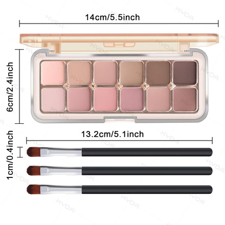 Product Description: Packages: Eyeshadow Palette X 1, Brush X 3 Colors: 12 colors, as the pictures NET: 12g 0.423oz. SIZE: 14.3*6.1*1.5cm/palette Tips: 1. Keep away from children and fire. 2. Store in a cool place to avoid direct sun. 3. This product is for external use only, do not use on broken skin. 4. If you feel uncomfortable while using it, please stop using it immediately. 5. Due to the display and light, the color difference in the picture may be caused. Please take the actual product as the main product. 6. If you are sensitive skin, please do a test before first use.