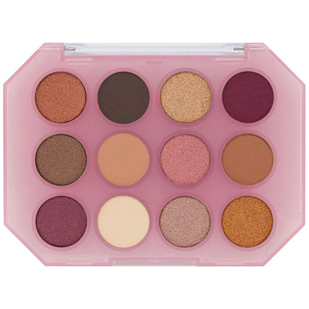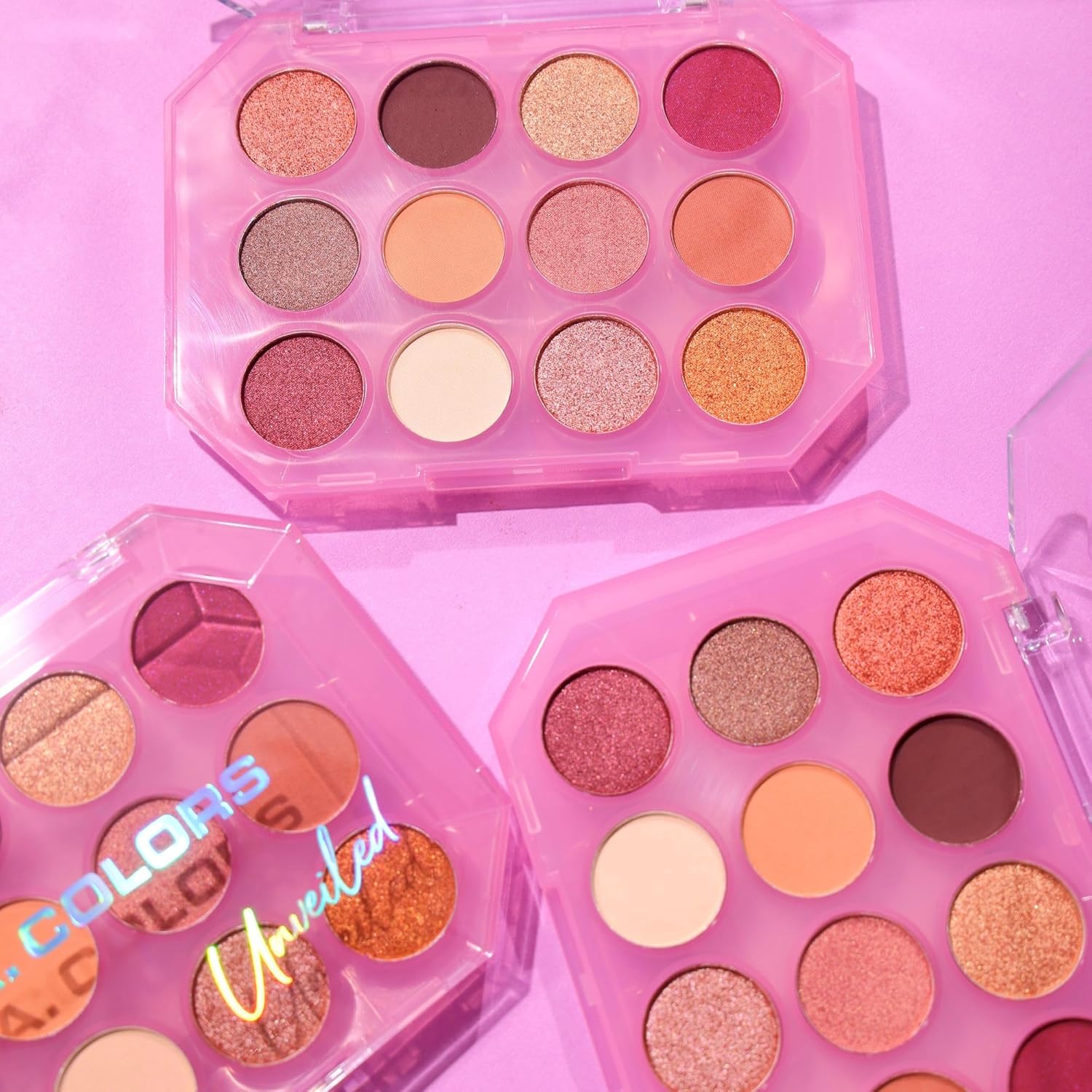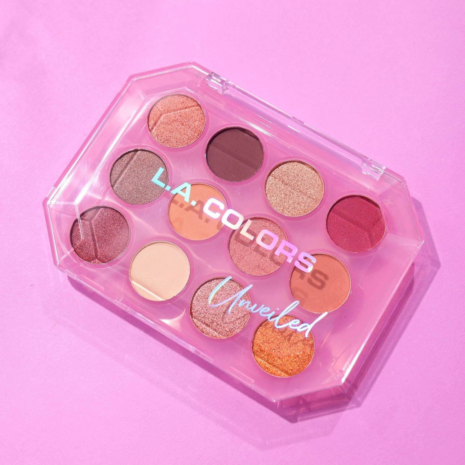 | Create mesmerizing eye looks with 12-color eyeshadow palettes, available in three unique shades: Unveiled, Stunner, and Surreal! the se eyeshadow palettes boast 12 blendable, buildable, and highly pigmented finishes and textures, ranging from eye-catching shimmers to silky mattes. the warm, neutral, and lively hues complement all skin tones and eye shapes, making it easy to define eyes and discover multiple looks tailored to your style. | Unveiled| —A transparent eyeshadow palette component in a milky-pink finish containing a mix of 12 shades ranging from soft copper tones to warm mauve and chocolate hues in soft matte and shimmer finishes. Stunner| — A transparent, milky-sea green eyeshadow component that is wearable, 12 color eyeshadow palette with lively pops of assorted hues in daring blue tones, essential neutrals, and touches of soft teal shades in soft matte and shimmer finishes. Surreal| —Nude essentials in one versatile eyeshadow palette for everyday use! This wearable palette features 12 complementary hues of creamy neutrals to cool, warm-toned, and light to deep shades in matte and shimmer finishes. It comes in a transparent, milky-nude component. Travel-Sized| Highly-Pigmented| Easy-to-Blend| Long-Wearing| Cruelty-Free| Shimmer Finishes| Matte Finishes| Pressed Eyeshadow Formula|