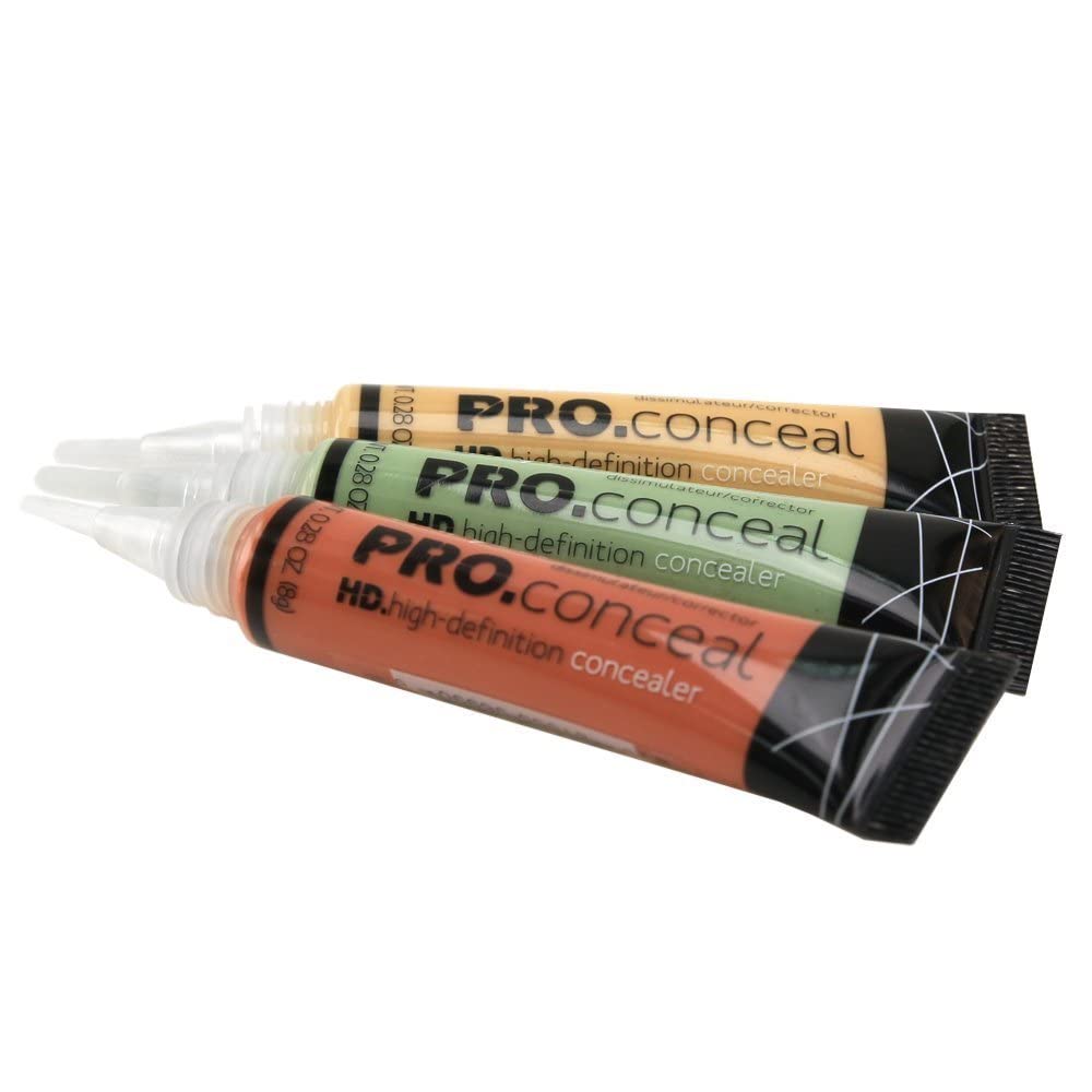 L.A. Girl Pro Conceal Set Orange, Yellow, Green Correctors. Crease-resistant, opaque coverage in a creamy yet light weight texture. Provides complete, natural-looking coverage.