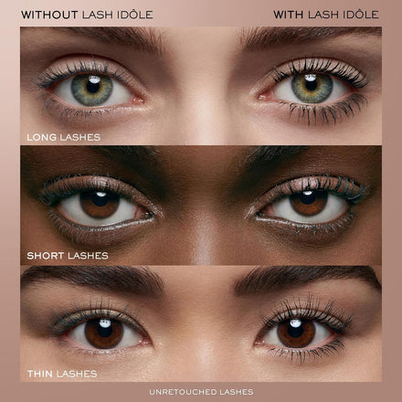 Lash Idôle Monseiur Big Définicils Hypnôse Drama Cils Booster Lash Primer What makes Lash Idôle Mascara's formula better? Our lightweight gel formula won't weigh on lashes leaving them feathery soft and is infused with White Tea Extract to provide an antioxidant & conditioning care. How long does this mascara last? Is it easy to take off? Lash Idôle lasts up to 24 hours with no smudging or flaking. At the end of the day you can easily wipe it off with some eye makeup remover, such as our Lancôme Bi-Facil Double Action Eye Makeup Remover. How do you apply Lash Idôle? Start with Cils Booster XL mascara primer to boost volume, length & curl. While Cils Booster XL is still wet, apply Lash Idôle Mascara: Use inside curve of mascara wand to build volume & outside curve to lengthen, separate & fan out lashes.