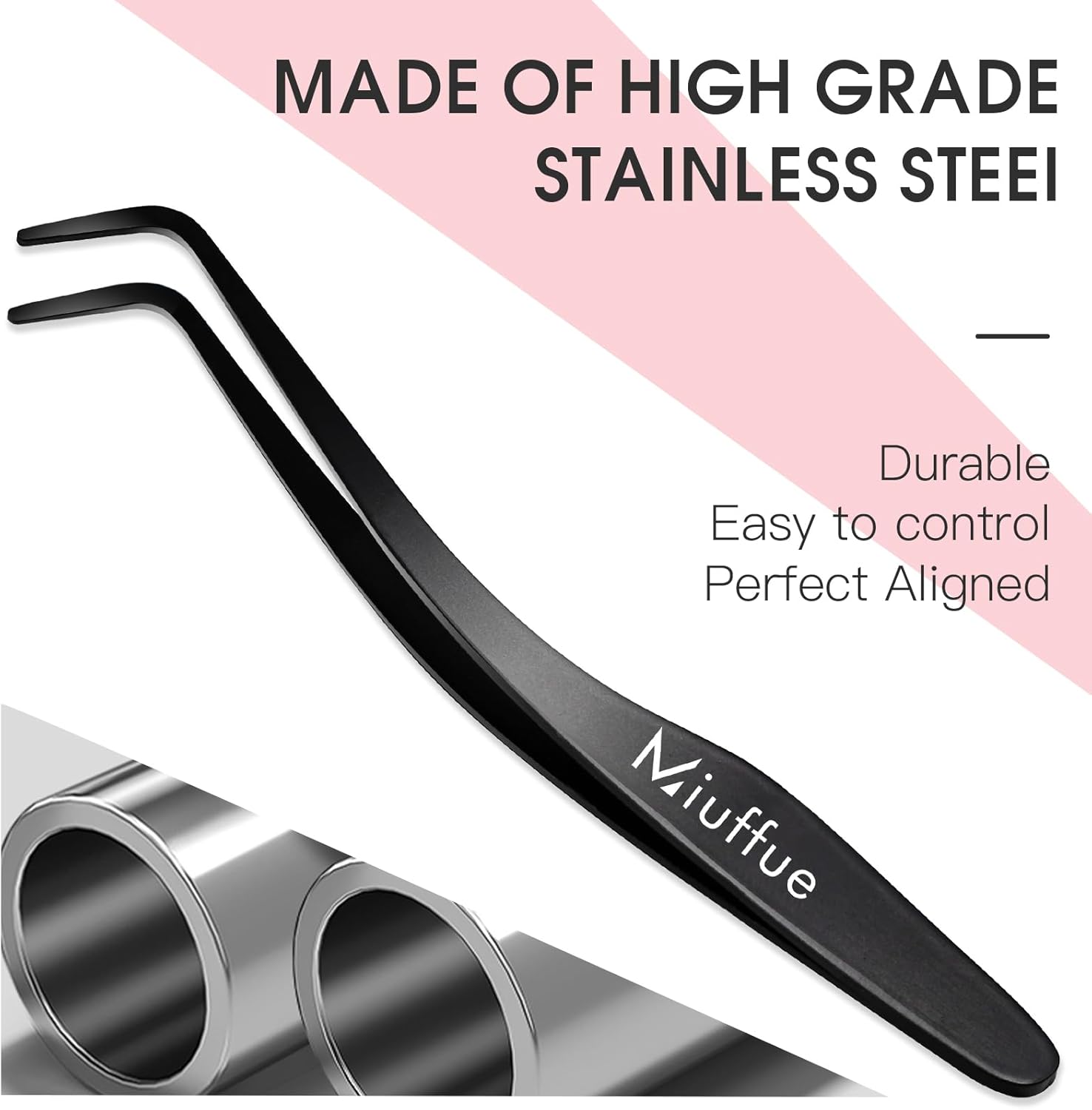 Lash Applicator Tool DIY Eyelash Applicator Stainless Steel Curved Eyelash Tweezers for Cluster Lashes (Black)