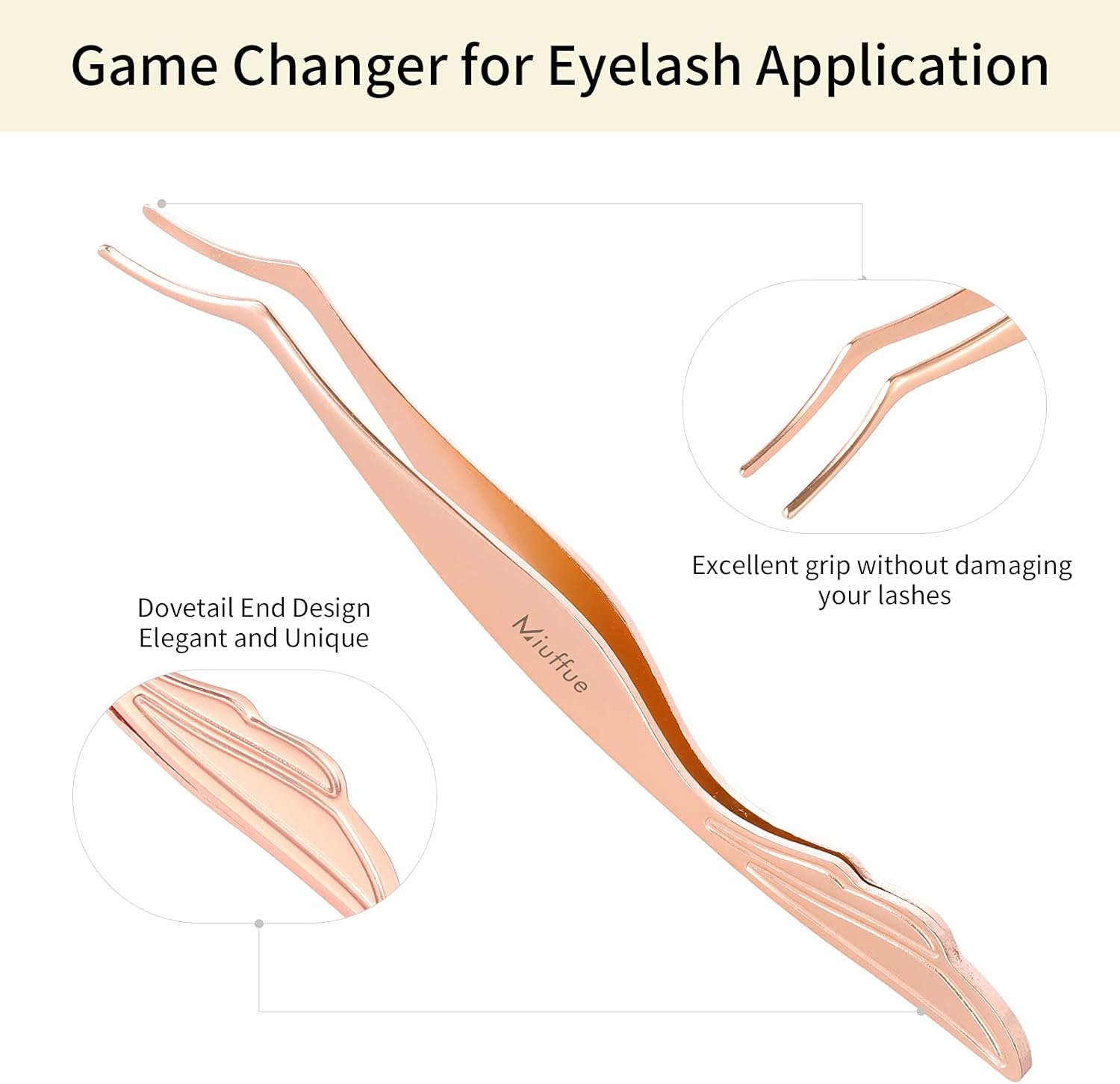 Lash Applicator Tool DIY False Eyelash Applicator Tool Stainless Steel Curved Eyelash Tweezers for Clusters and Strip Lashes, Rose Gold