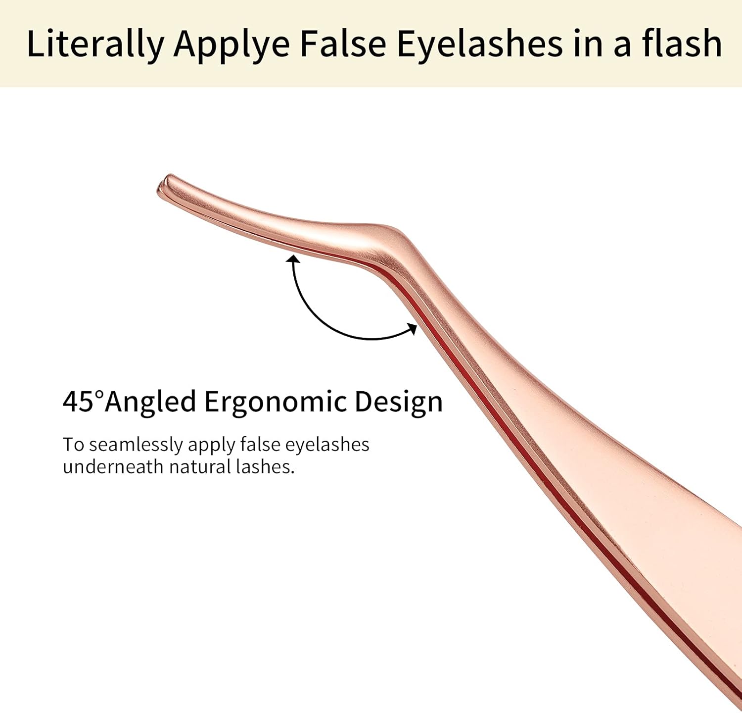 • Easy to Use: Made of durable stainless steel. This curved lash tweezers adopt the humanized multi-functional design, easy to use, perfect for beginners and make-up lovers