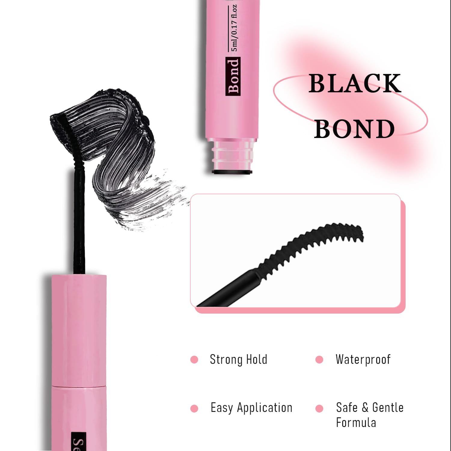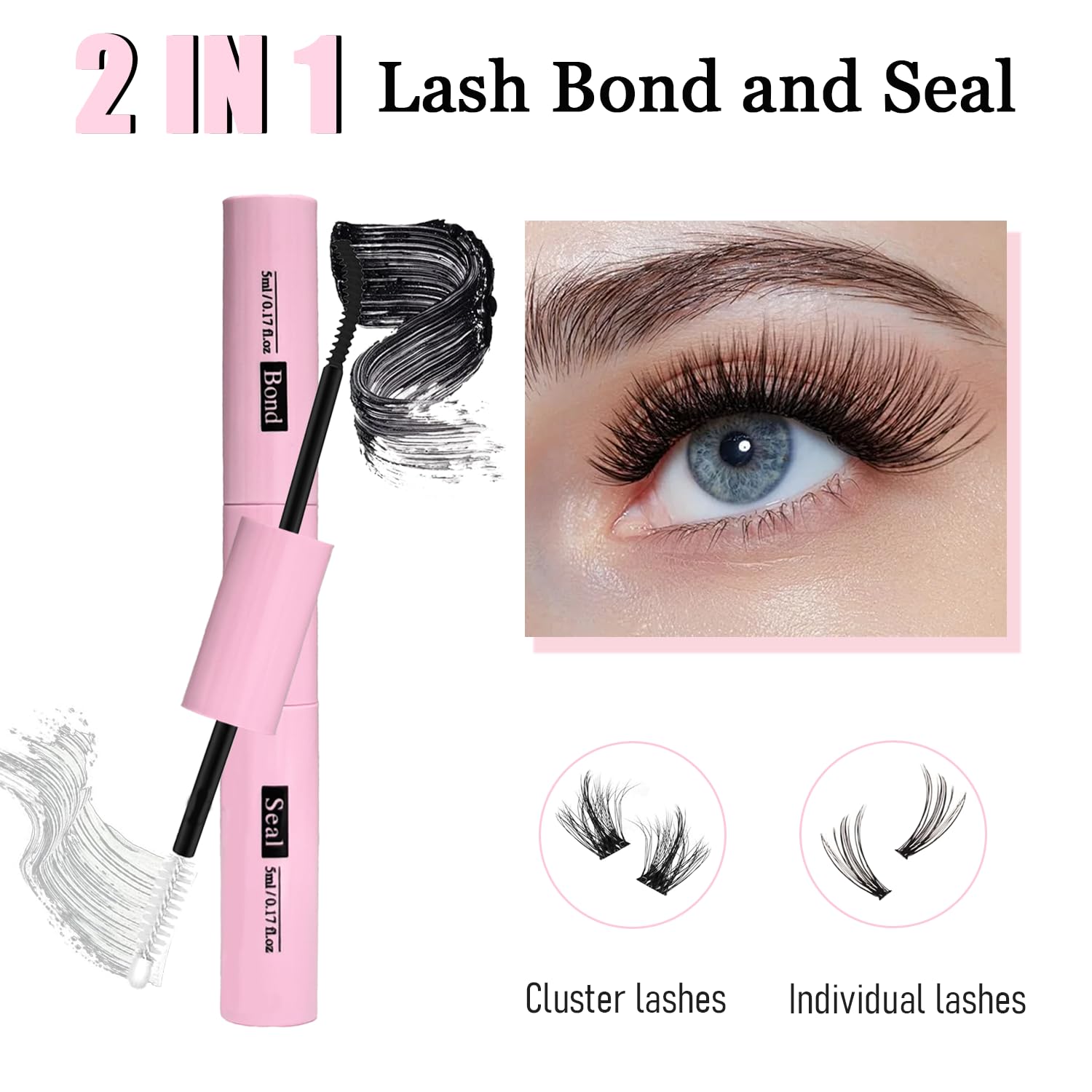 Lash Bond and Seal for Cluster Lashes,2 in 1 Black Cluster Lash Glue Waterproof Long-Lasting,DIY Eyelash Bond Strong Hold,Individual Lash Bond for Self-Application at Home