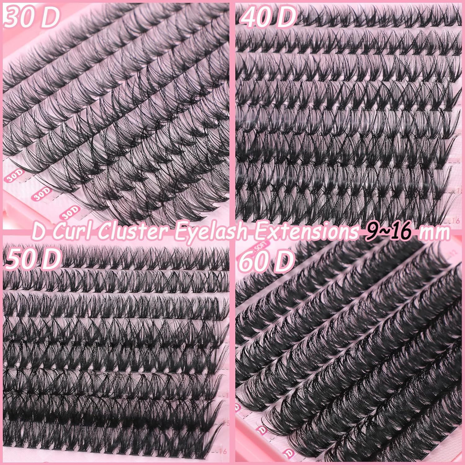 - Abundant Items You Get: This lash clusters include 640 Pcs eyelashes with different density 30D-60D, length 9-16 mm, 1 lash bond and seal, 1 tweezer, 1 brush. You can DIY eyelash clusters, no need go to salon, save time and money