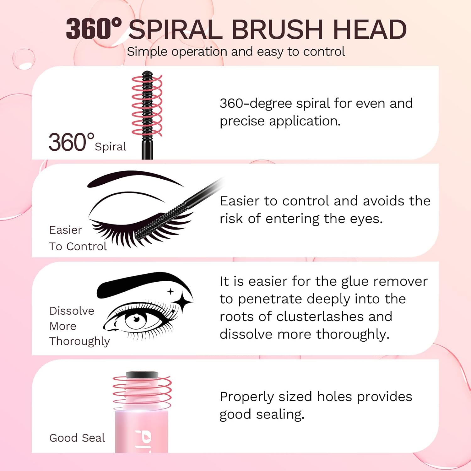 • Friendly for Beginners: The brush head of the eyelash glue remover adopts a spiral brush design, which is simple to operate. It is not only easy to control and effectively prevents the glue remover from sliding into the eyes, but also can evenly take out the glue remover and apply it on the false eyelashes, even for beginners.