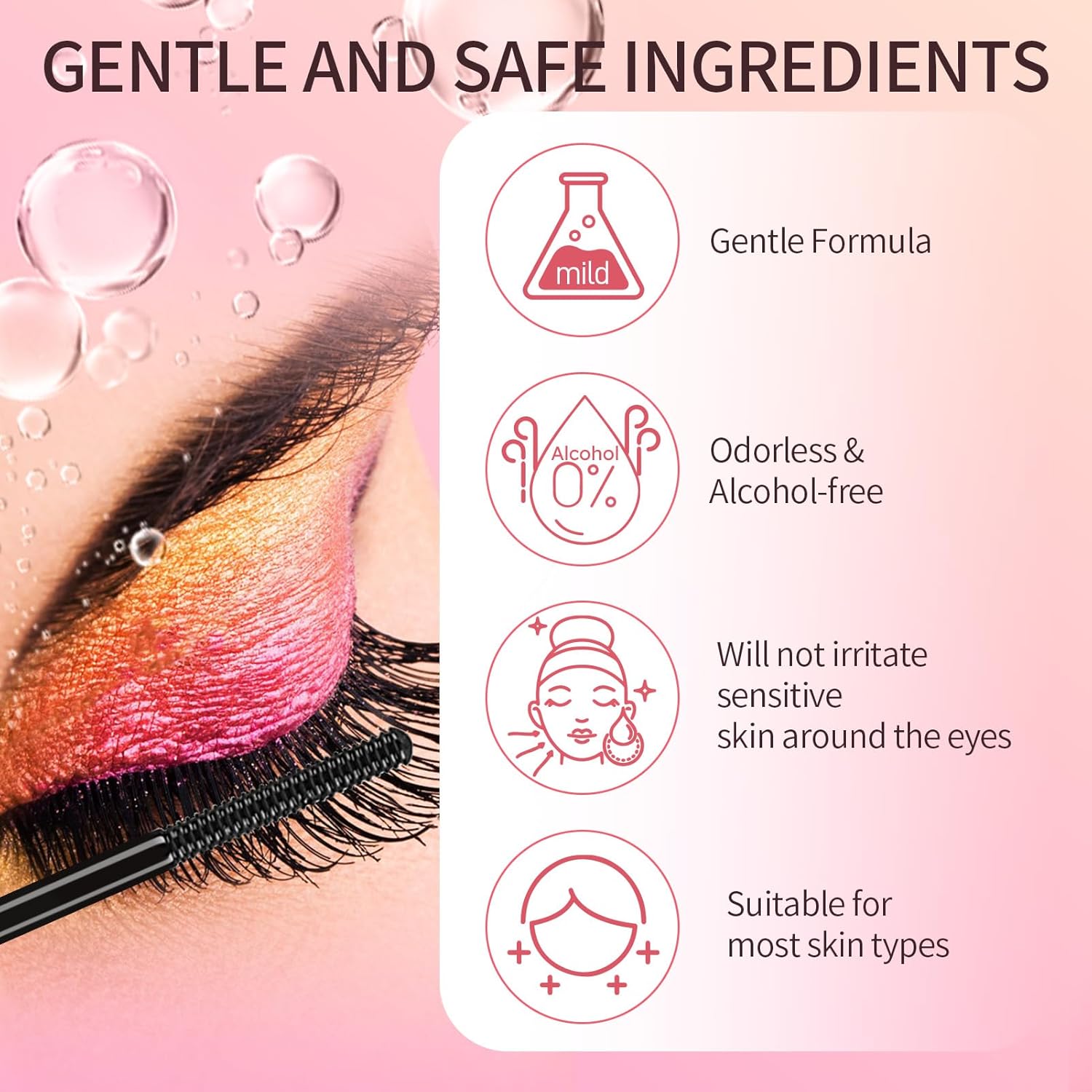 • Mild Ingredients: The lash remover adopts a mild formula with no irritating ingredients, making it safe even for sensitive eye skin. Ideal for removing eyelash clusters, single eyelashes, fake eyelash strips, etc. (The lash glue remover is only suitable for removing daily self-grafting eyelash glue. It is not suitable for professional salon grafting eyelashes. Please confirm before purchasing.)