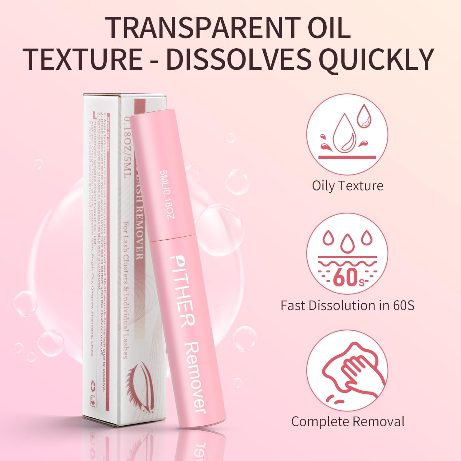Lash Remover for Lash Extensions 5ml, Eyelash Glue Remover Self-Use at Home DIY Eyelash Extension Remover Non-irritating Soothing Oil Texture Lash Clusters Clear Remover PITHER