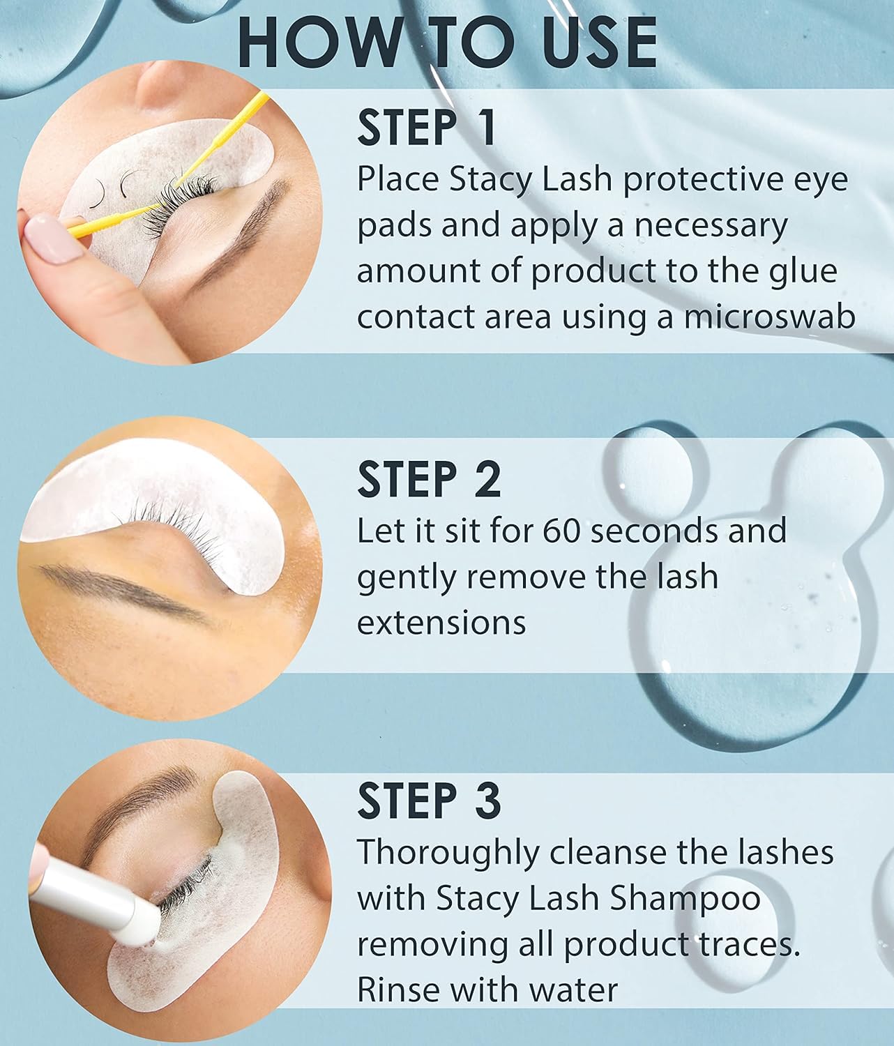 • Fast action - the Stacy Lash Eyelash Glue Remover has new super active power formula. Eyelash extension glue remover will dissolve lash adhesive just in 60 seconds, offering quick and efficient lashes removal.