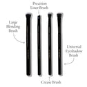 • HOW TO APPPLY: To use with The Ultimate Palette, use the Universal Eyeshadow Brush to apply shadows for your base, lid and inner/outer corner. You can also use it to apply your shimmer topper as a finishing touch. Use the Large Blending Brush to blend shadows together for a perfect finish. For extra definition, blend deeper shades into your crease using the Crease Brush. Last, use the Precision Liner Brush to line eyes along the upper and lower lashlines, as desired.