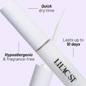 • Lilac Lash Glue - The perfect bond for beginners with a strong yet forgiving formula with plenty of playtime for wisp placement. The brush tip applicator makes precise application a breeze. Dries invisible to help hide any trace of the falsies on your eye.