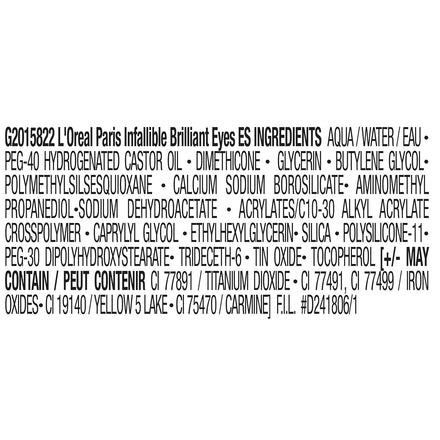 Do you want brilliant eyes? Coat your eyelids in brilliant shimmer with L'Oreal Paris brilliant eyes liquid eye shadow. This high-impact, high-shimmer liquid eye shadow stays true all day long! Yes, it Is true - brilliant eyes is transfer-proof! This means no fall-out, so you can wear shimmer eye shadow on your eyelids and not your cheeks! The luminous pearl pigments are lightweight and non-greasy for comfortable wear. In just one stroke, the soft doe foot applicator deposits just the right amount of product onto your eyelids for high shimmer payoff and blendable application. Available in 12 shades, you can customize your brilliant lid look by pairing shades, building intensity, or just wearing your favorite shades alone to achieve a daytime or nighttime look.