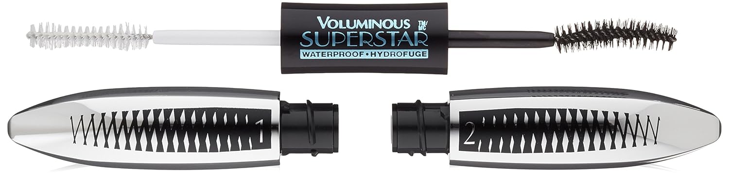 L’Oral Paris Voluminous Superstar Waterproof Mascara is a two-step primer and lengthening mascara for a show-stopping lash effect. Super-volumizing primer builds dramatic volume on every lash and creates an ultra smooth base to maximize mascara performance. Super-extending mascara with a fiber-rich black formula. • Super-volumized, Super-extended lashes • Primer and Fiber Mascara System • Superstar Lashes • Smudge proof, Waterproof mascara Start by applying the Super-Volumizing primer making sure to coat every lash. Then, before the primer dries apply the fiber-rich mascara on top of the primed lashes to create a show-stopping lash look. Repeat on other eye. Flammable until dry. Do not use near fire, flame or heat. To safeguard L’Oral purity, reserve this product for your personal use. Treat the applicator with the hygienic care you give your eyes. Never apply this product in a moving vehicle. Do not dilute mascara with water, saliva, or any other substance. Cap tightly after use. If change in odor or appearance occurs, discontinue use. Do not use this or any other eye cosmetic if your eye is injured, irritated or infected. Consult a physician.