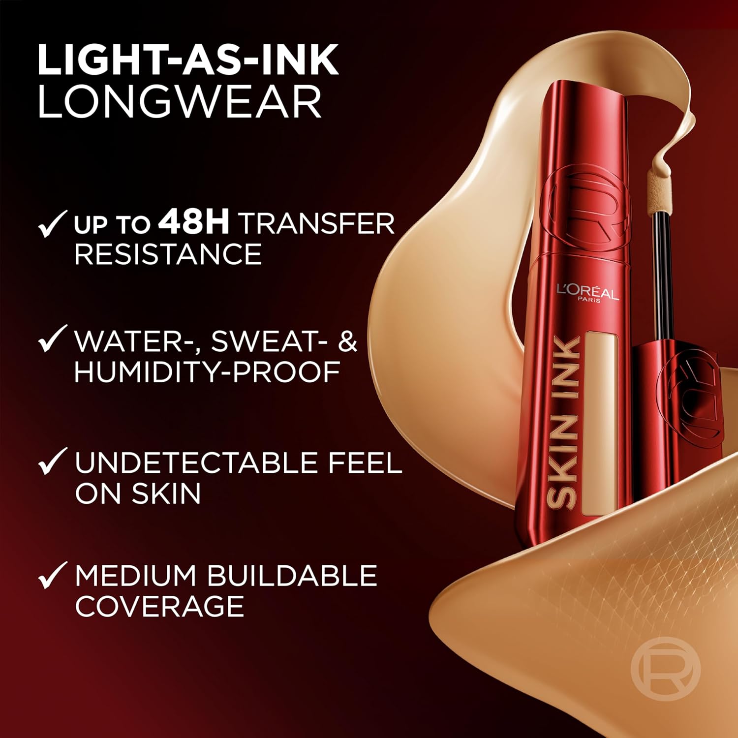 L'Oreal Paris Infallible Skin Ink 2-in-1 Foundation Concealer Hybrid Face Makeup, up to 48HR Transfer-Resistant with Buildable Light to Full Coverage, 130 Medium Cool
