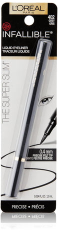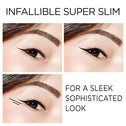 Create sleek and sophisticated eye designs. The 0.4mm ultra-fine felt tip of Infallible The Super Slim gives you total control, delivering the perfect amount of liner. The intense quick dry up to 12HR formula glides on smoothly with continuous and even flow. Skip-proof, drag-proof and smudge-proof. Packaging May Vary. What you receive may not be what is reflected on site. Ultra-Fine Felt Tip Liquid Eyeliner, Intense, Quick-dry Formula, Flawlessly Precise Lines, Smudge-proof, Up to 12HR Apply along the top and bottom lash line beginning in the inner corner of the eye and working outward. Warning: Eye cosmetics in a scratched, infected or irritated eye and scratches from cosmetic eye applicators can lead to eye damage, and in extreme cases, even blindness. If your eye is scratched, stop using all eye cosmetics and go to an ophthalmologist immediately. Never apply this product in a moving vehicle.