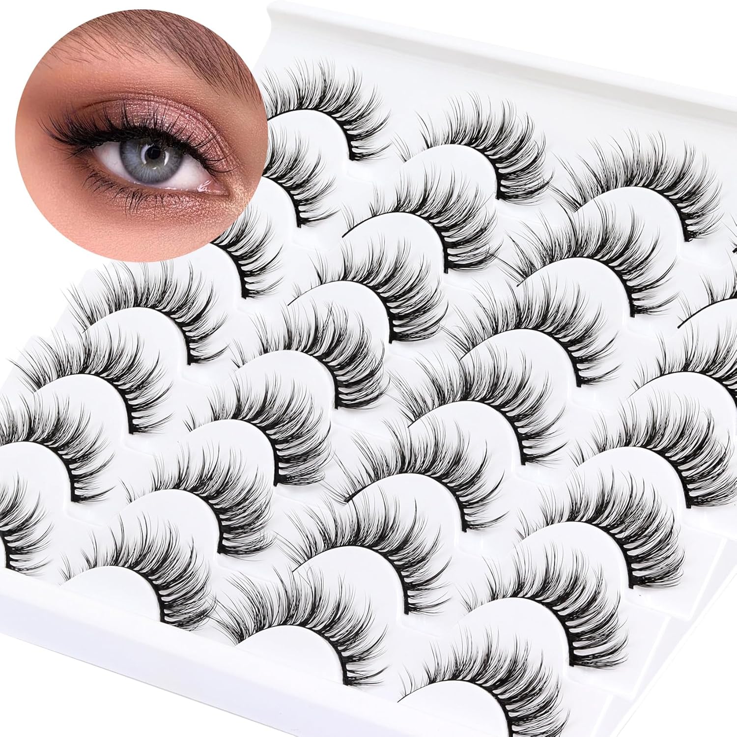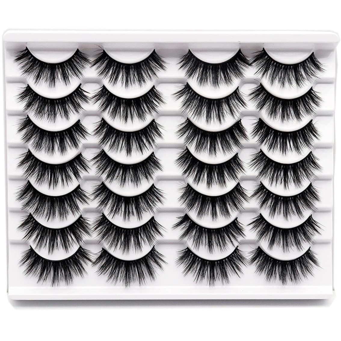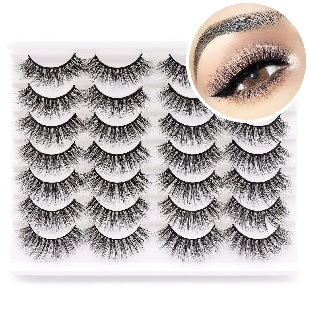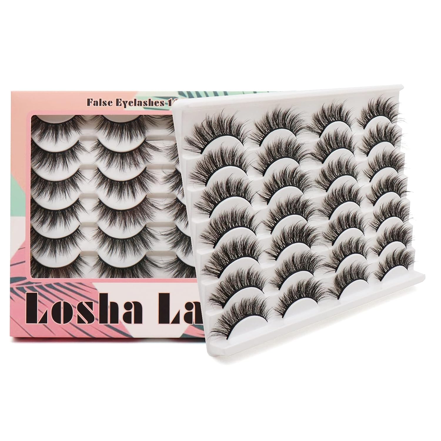 Losha Eyelashes Natural Look Faux Mink Lashes Pack Handmade Fluffy False Eyelashes 14 Pairs Cat Eye Lashes (54)