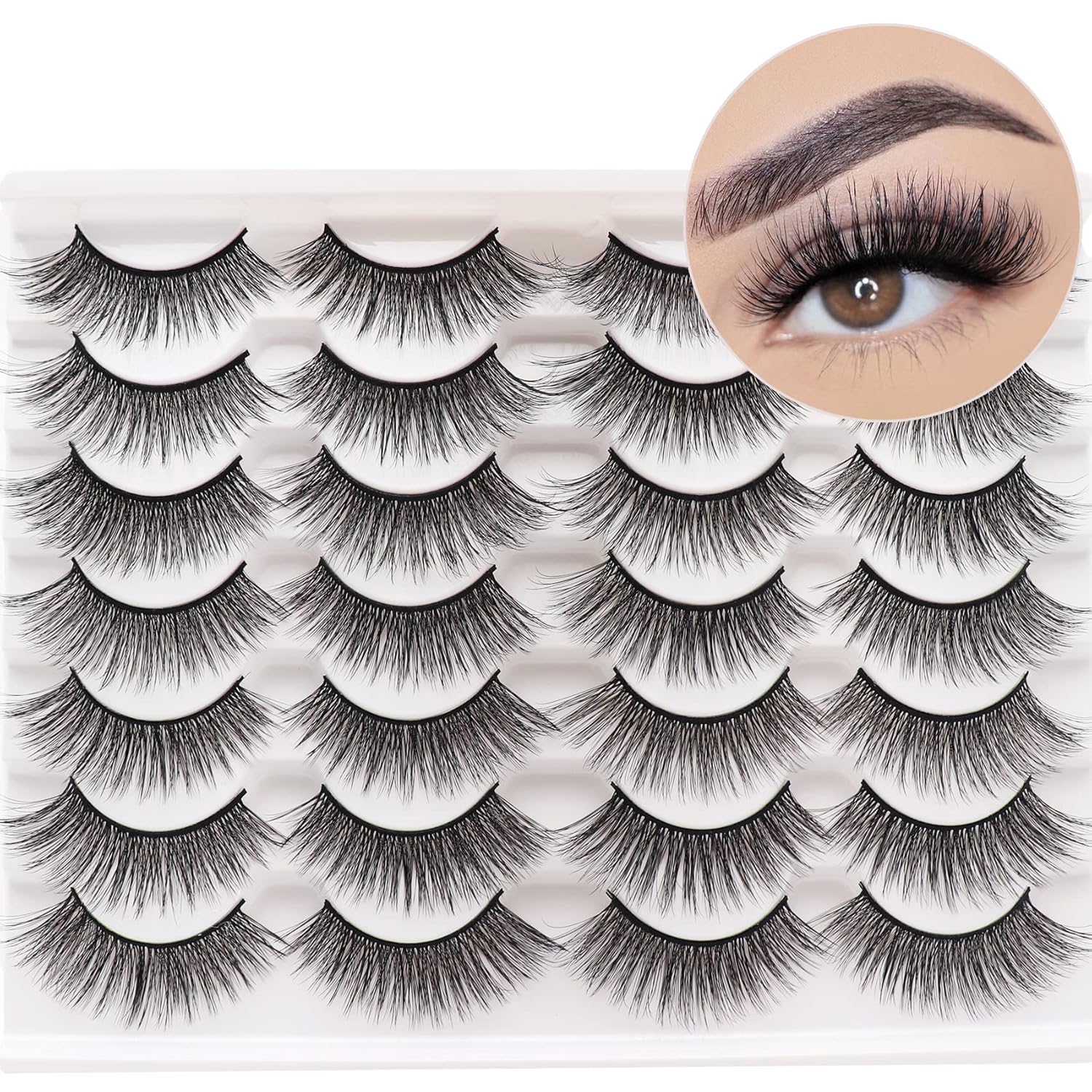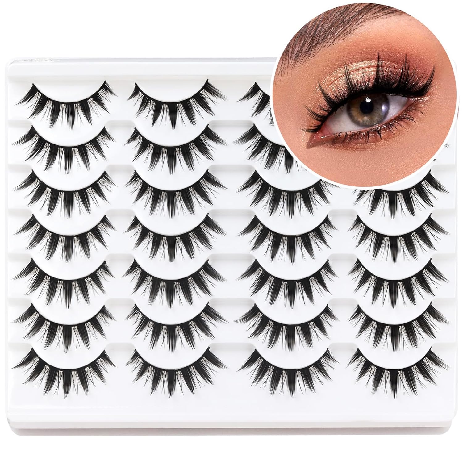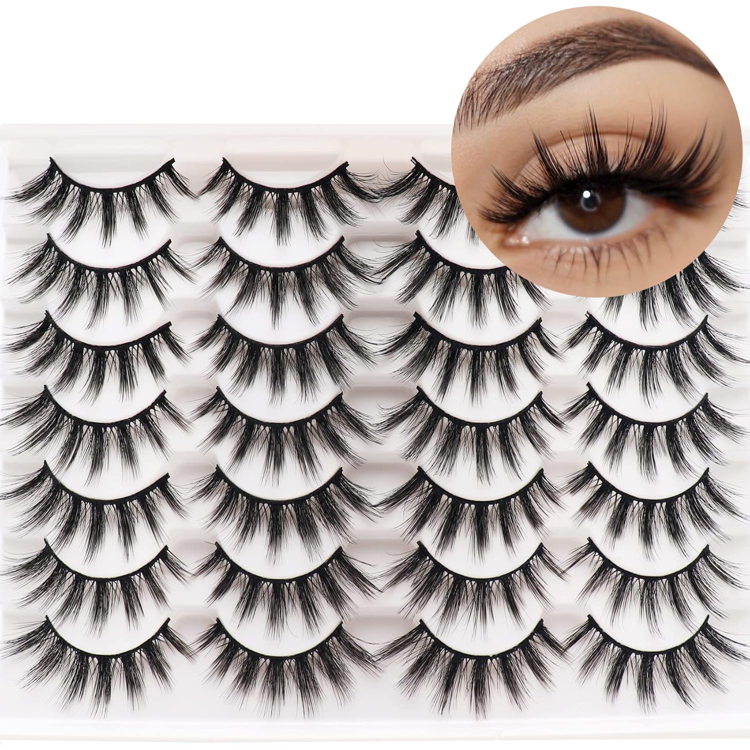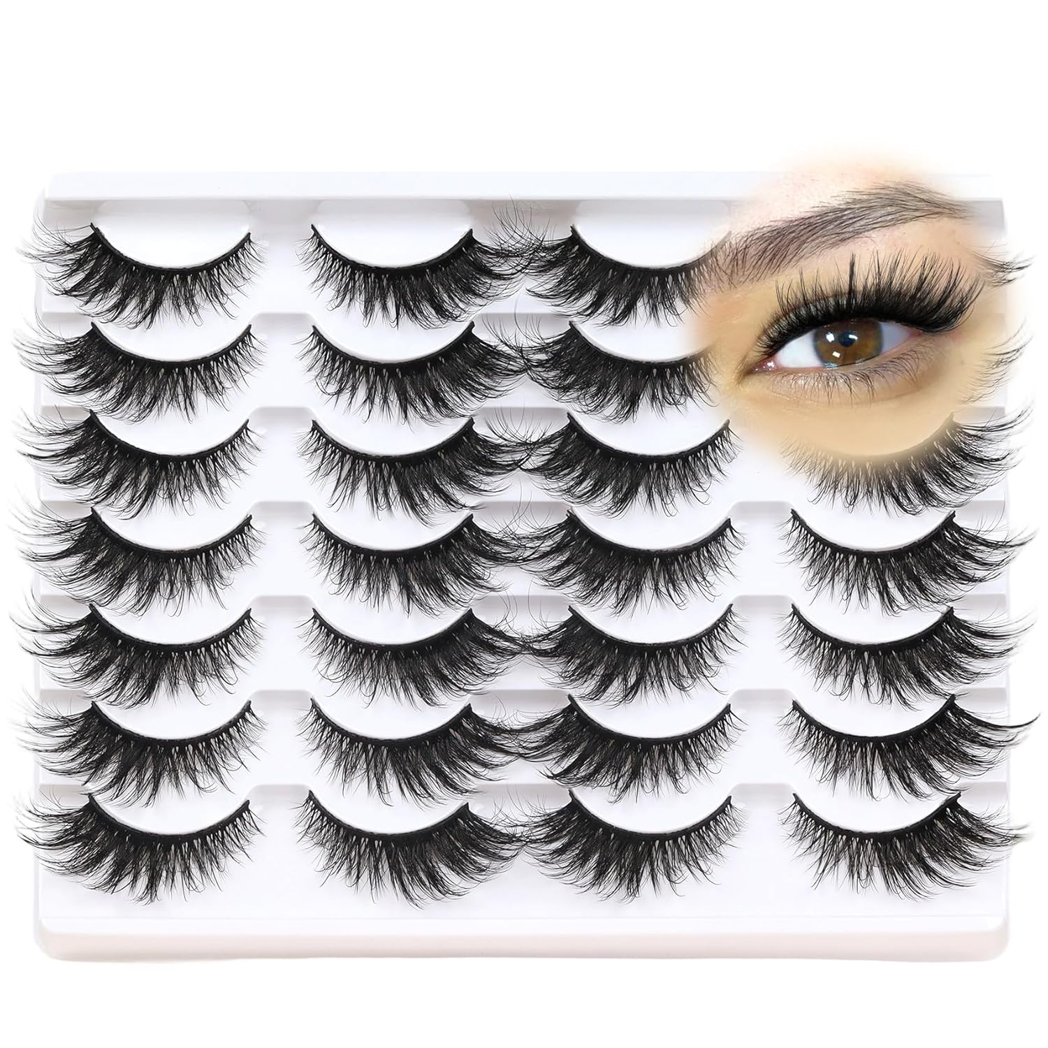 Losha Eyelashes Natural Look Faux Mink Lashes Pack Handmade Fluffy False Eyelashes 14 Pairs Cat Eye Lashes (54)