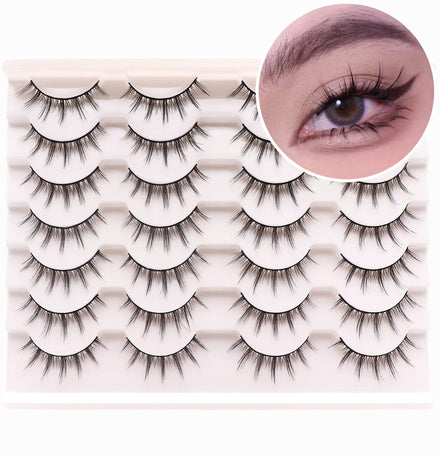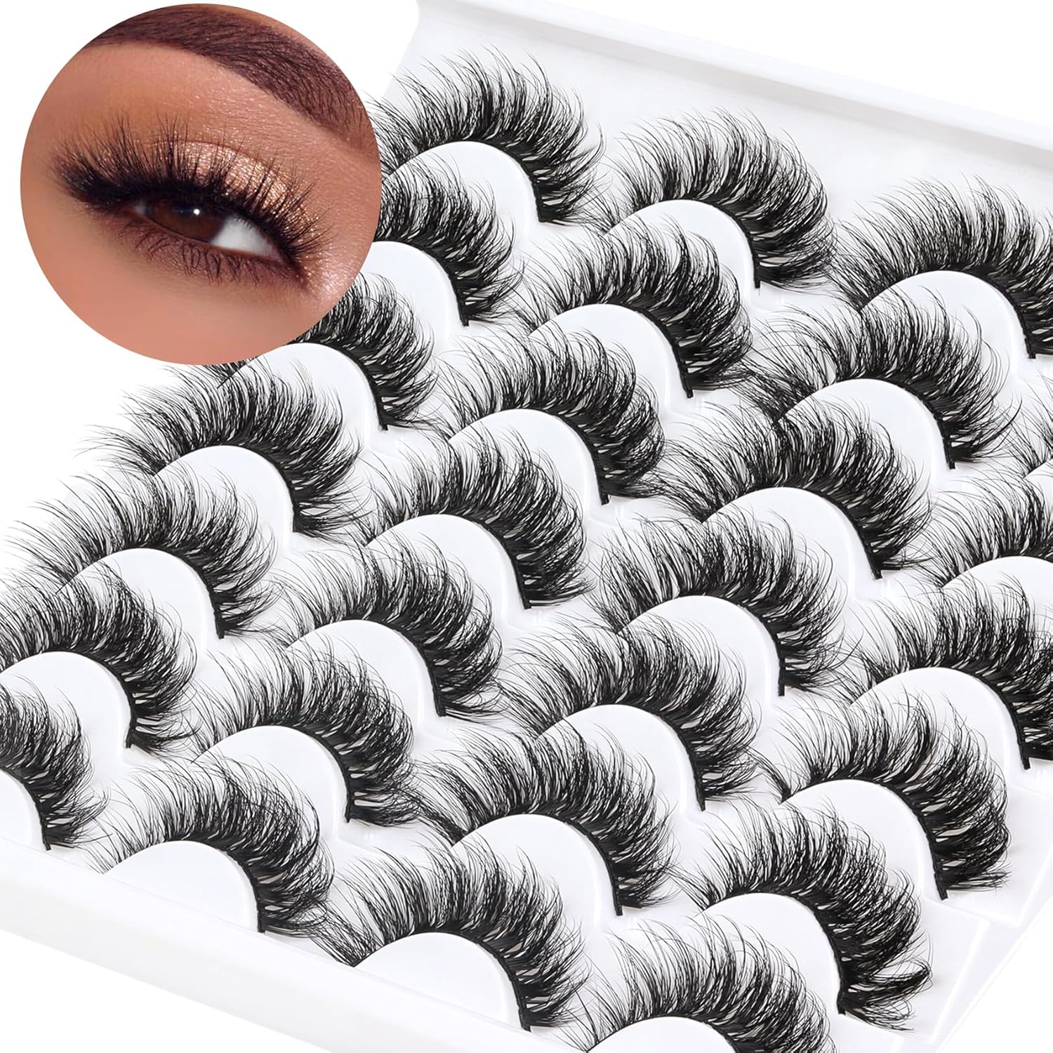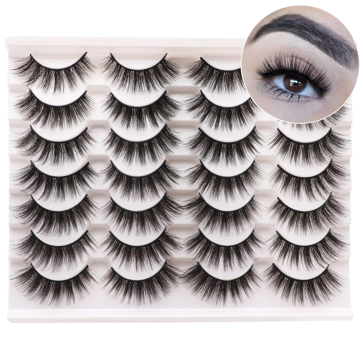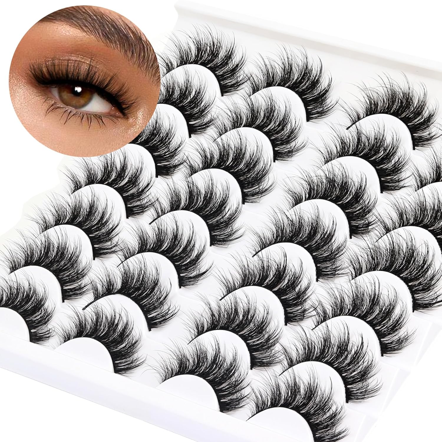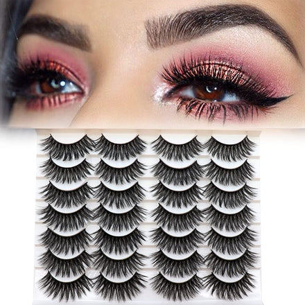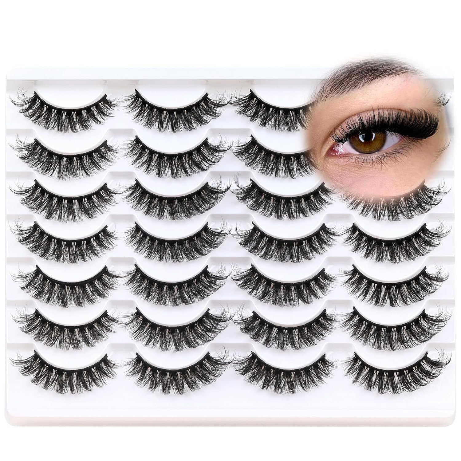 Losha Eyelashes Natural Look Faux Mink Lashes Pack Handmade Fluffy False Eyelashes 14 Pairs Cat Eye Lashes (54)