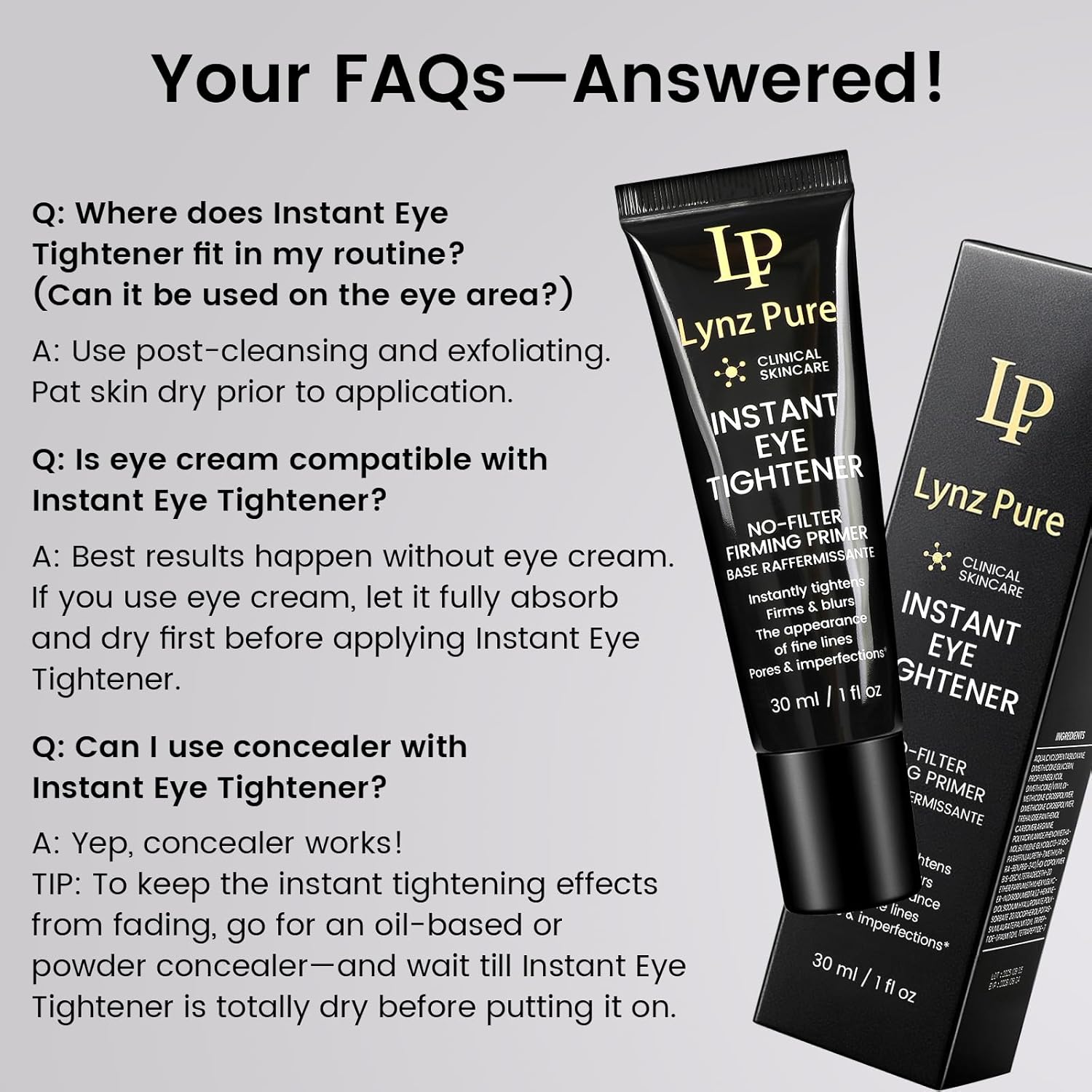 - INSTANT EYE TIGHTENING: Instant eye firm with 30ml eye cream, working for fine lines and pores, tightening your eyes skin for a more lifted look. Whether prepping for a big event, or daily face caring, our eye tightener is your ideal choice