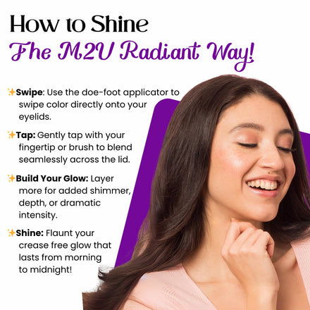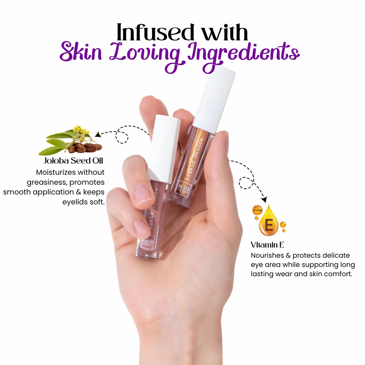 • Infused with Skin-Loving Goodness: Packed with nourishing ingredients like Jojoba Oil, Orange Flower, Brown Seaweed, and Vitamin E, our eye shadow liquid glides on with a smooth, second-skin feel — giving your lids a fresh, healthy glow while you shine.