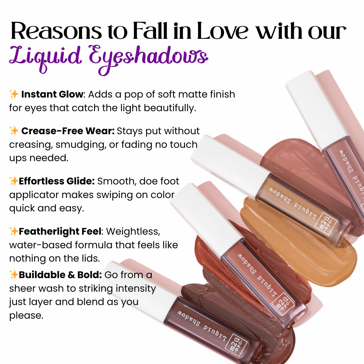 • Buildable & Blendable: From soft matte to bold shimmer, our liquid eyeshadows are made to play. Layer the matte liquid shadow as a base for a smooth, modern finish, then top with a shimmer eyeshadow liquid for instant dimension and glow. Tap, blend, build it up — your look, your rules.